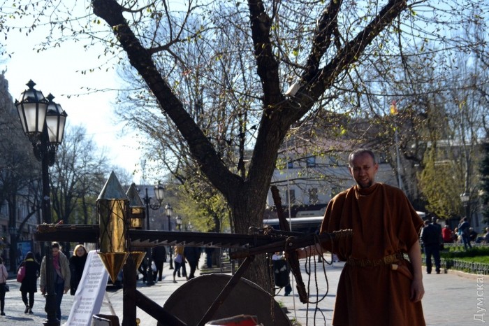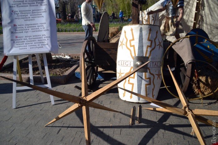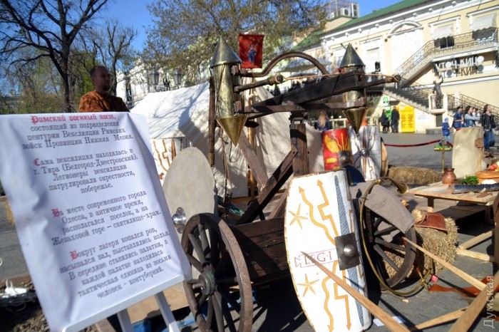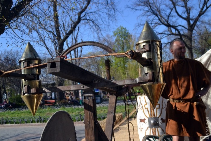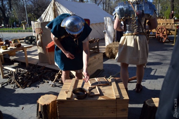 В лагере на Дерибасовской есть даже настоящая античная баллиста! В ближайшие дни «солдаты» будут тренироваться, готовить еду и отдыхать — так, как это делали настоящие легионеры две тысячи лет назад. Они рады гостям и готовы все рассказать и показать, а также сфотографироваться вместе с желающими.