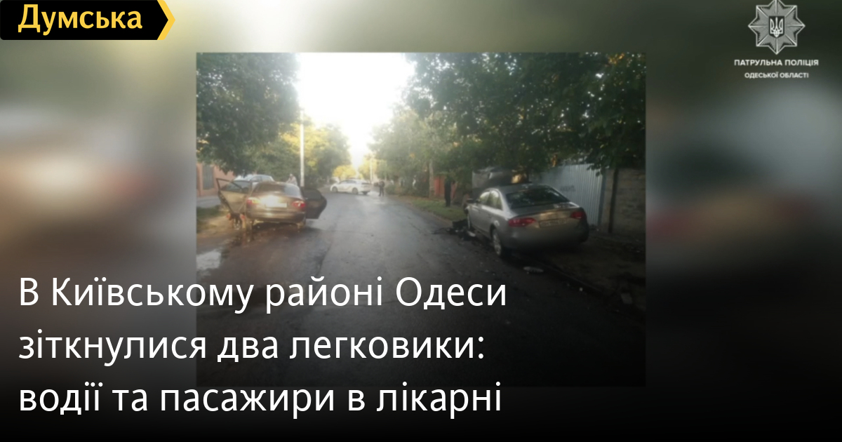 В Київському районі Одеси зіткнулися два легковики: водії та пасажири в лікарніДТП за участю автомобілів Audi та Daewoo сталася вдень 22 вересня на вулиці Дмитра Донського. Як повідомила речник патрульної поліції Одеської області Алла Марченко, водій Audi не впорався з керуванням, виїхав на зустрічну смугу і зіткнувся з Daewoo. Внаслідок зіткнення до лікарні доставили обох водіїв та пасажирів авто. На місці працювали патрульні та слідчі. Помітили помилку? Виділяйте слова з помилкою та натискайте control-enter Новини по цій темі: 30 серпня 2025: Машина вилетіла в кювет: мер Рені потрапив в аварію, його мати загинула, а маленький син у лікарні (фото) 18 серпня 2025: Троє загинули, один у лікарні: на трасі Одеса-Рені водій Mercedes не пропустив фуру (фото) 28 липня 2025: П'яний на "Ягуарі" або гіпертонік? Звільнений топ-посадовець одеської поліції хоче повернутися на службу 2 квітня 2025: В Одесі водій BMW спровокував аварію, в якій постраждали п`ятеро людей, і втік (фото, відео) |