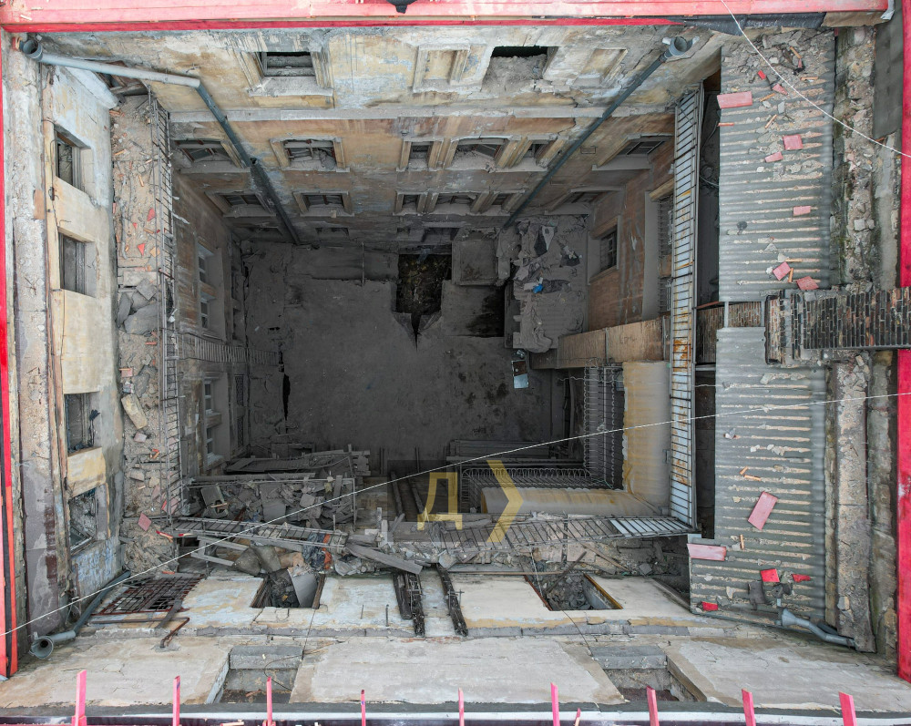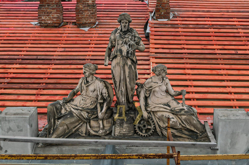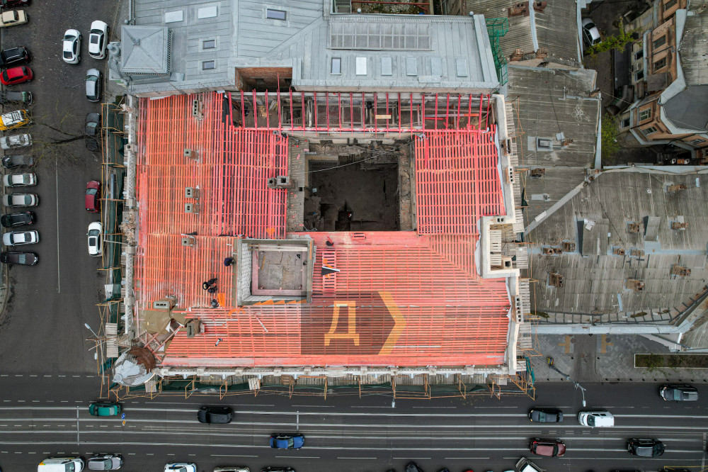 Кроме того, как видно по фотографиям, продолжаются работы по реставрации фасада — на двух верхних этажах восстановили лепнину.