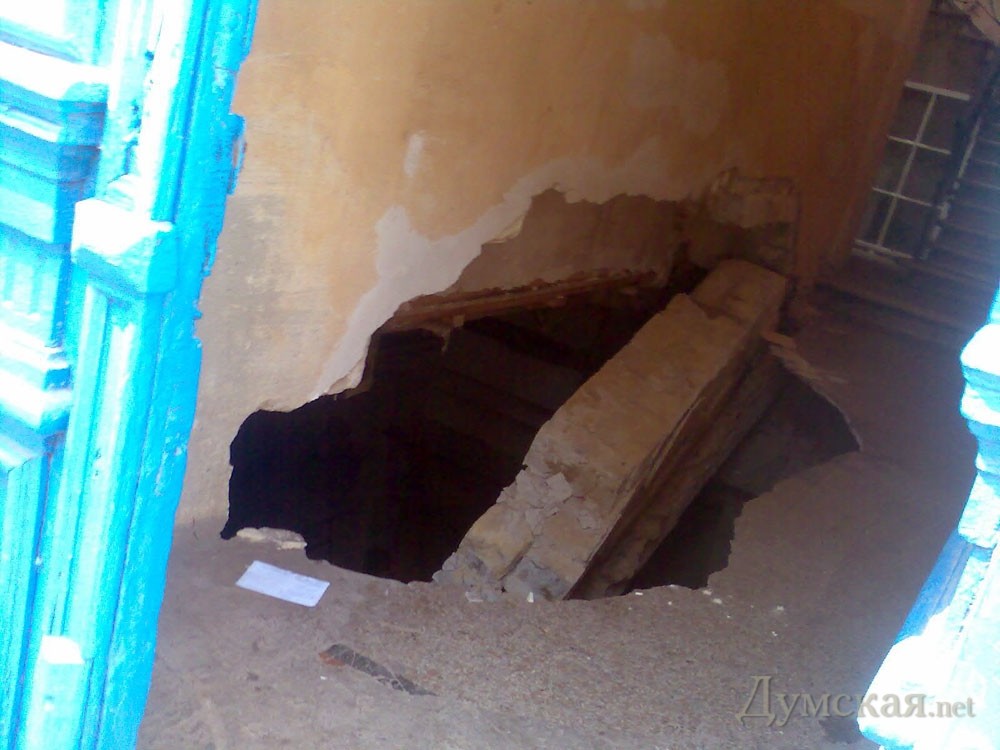 В доме-памятнике архитектуры разрушилась парадная: одесситы сутки оставались на улицеВ доме №20 по Коблевской улице (доходный дом Ганелина 1890 года постройки) обрушилась часть парадной. Как рассказала «Думской» жительница коммунальной квартиры, расположенной на втором этаже, многодетная мать Наталья, инцидент произошел еще вчера вечером – между первым этажом и подвалом сломалась большая балка и перед ступеньками, ведущими на второй этаж, образовался провал размером два на два метра. Кроме того, в подвал рухнула часть стены. На месте побывали спасатели и чиновники. 12 человек эвакуировали из флигеля, а на двери повесили замок. Жильцы говорят, что о предоставлении какой-либо временной жилплощади речи не шло. Вопрос о сооружении временного перехода, чтобы жильцы могли хотя бы забрать свои документы, не решался до сегодняшнего вечера. «Вчера вечером мой муж ночевал под балконом, пока его не пустили к себе соседи по переулку. Детей я отвезла к бабушке», – рассказывает Наталья. Недавно на место ЧП прибыли коммунальщики, которые делают над ямой деревянный мостик и обещают, что даже приварят металлические перила. Тем временем пресс-служба мэрии сообщает, что разрушенные конструкции осмотрел эксперт из НИИ «Проэктреконструкции». По его заключению, несущая балка упала из-за износа металлических швеллеров (коррозия и влажность морского климата). «Свою лепту в разрушительный процесс внесли и длительные летние дожди», — говорится в сообщении. При этом, по информации ЖКС «Порто-Франковский», в списке аварийных или ветхих домов этот флигель числится. «Теперь сотрудники ЖКС ждут от экспертов рекомендации по укреплению основных конструкций здания в месте обрушения», — заключили в мэрии. СМЕРТЬ РОСІЙСЬКИМ ОКУПАНТАМ! Помітили помилку? Виділяйте слова з помилкою та натискайте control-enter |