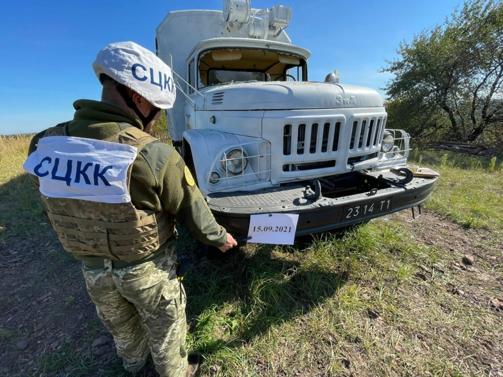 Вантажну машину української сторони Спільного центру з контролю та координації питань припинення вогню та стабілізації лінії розмежування сторін (СЦКК) обстріляли бойовики на Донбасі ввечері 14 вересня.