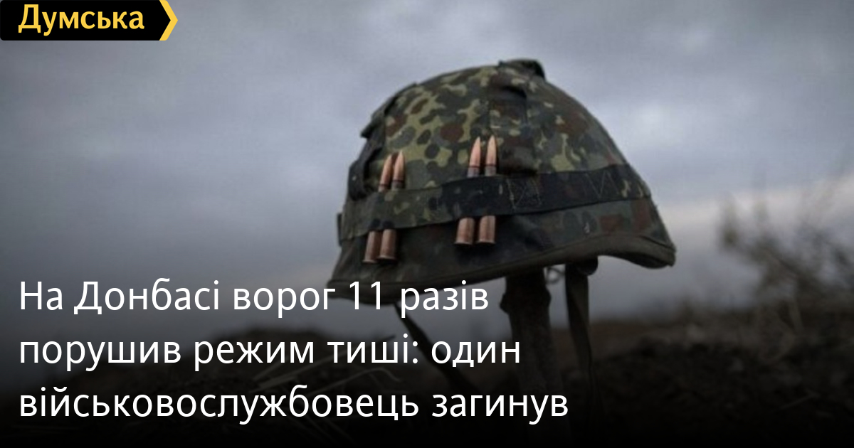 Збройні формування Російської Федерації протягом минулої доби 11 разів порушили режим припинення вогню в районі проведення операції Об’єднаних сил. В наслідок ворожого вогню один український військовослужбовець загинув.