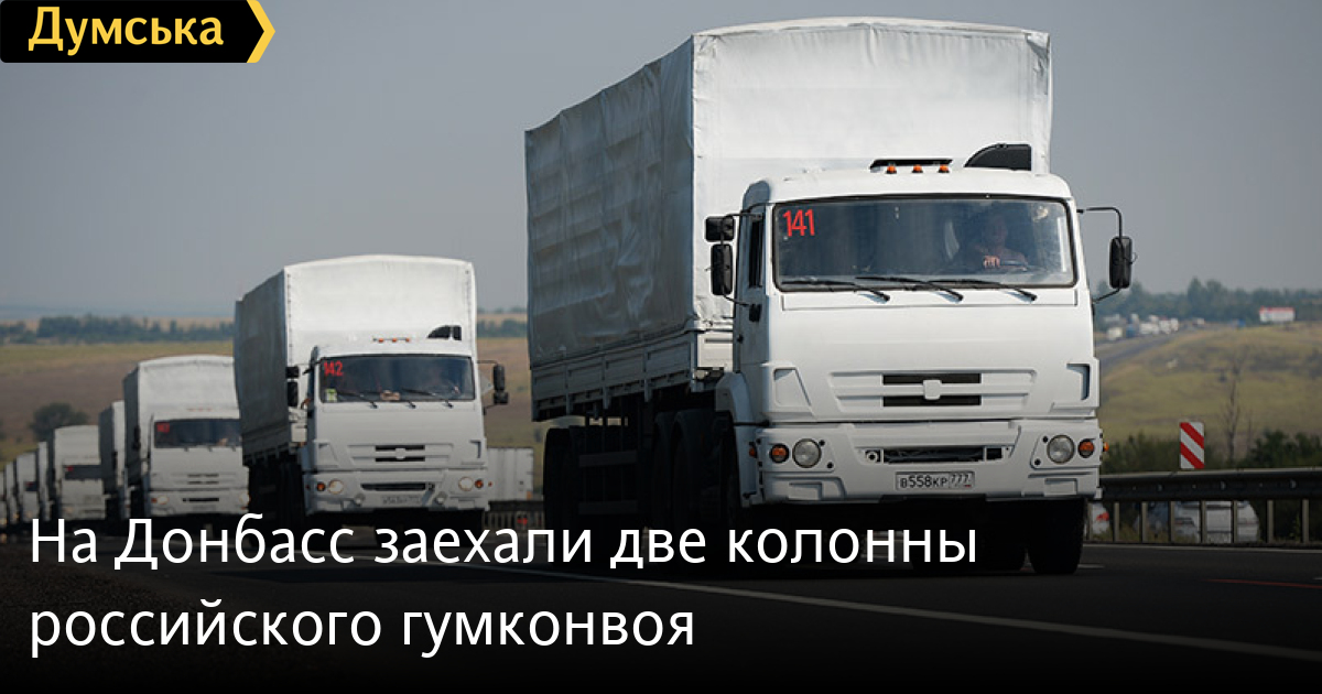 По данным ведомства, с 5:30 до 6:35 через российские пункты пропуска «Донецк» и «Матвеев Курган» на въезд в Украину последовало две колонны так называемого «Гумконвоя» в составе 14 автомобилей.