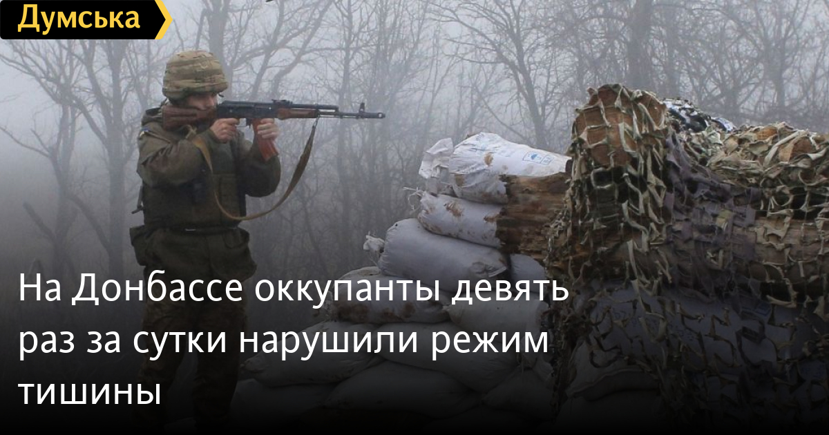 22 декабря в зоне проведения операции Объединенных сил на Востоке Украины российские оккупационные вооруженные формирования девять раз нарушили «режим тишины» и открыли огонь по позициям украинских военнослужащих.