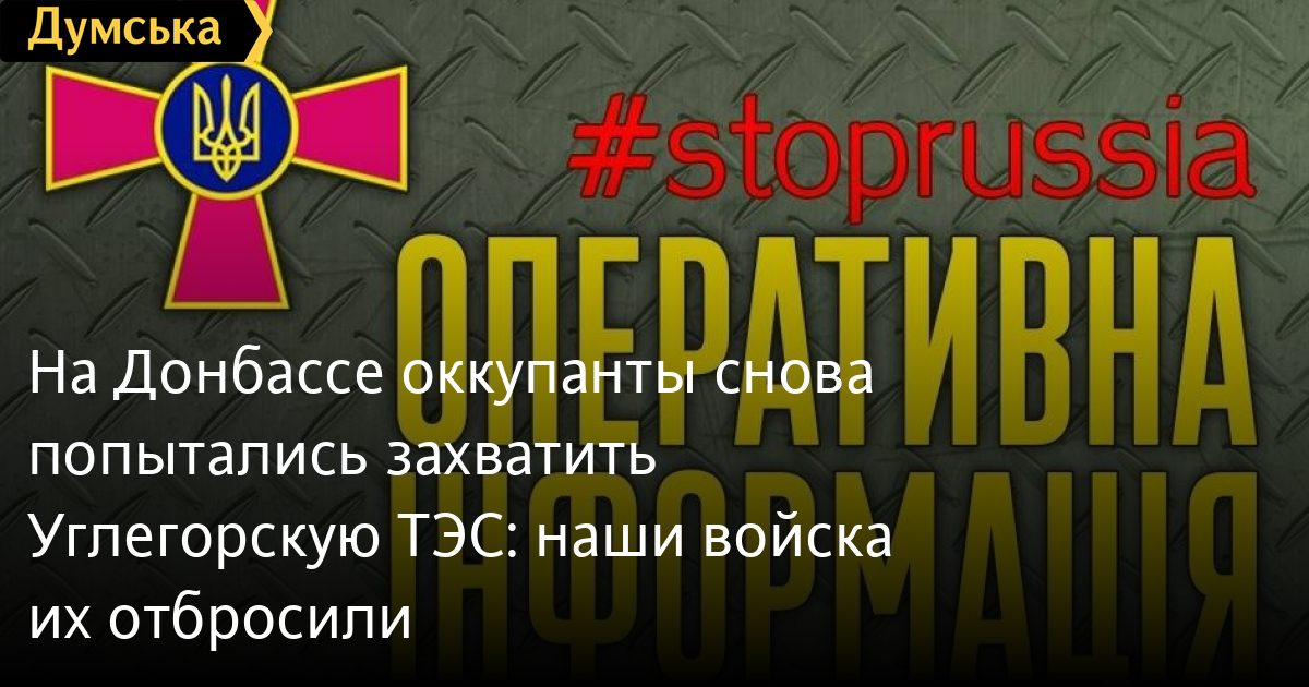 У Генеральному штабі Збройних сил України повідомили, що противник знову пішов на штурм ТЕС із кількох напрямків, але Сили оборони придушили цю спробу та відкинули ворога.
