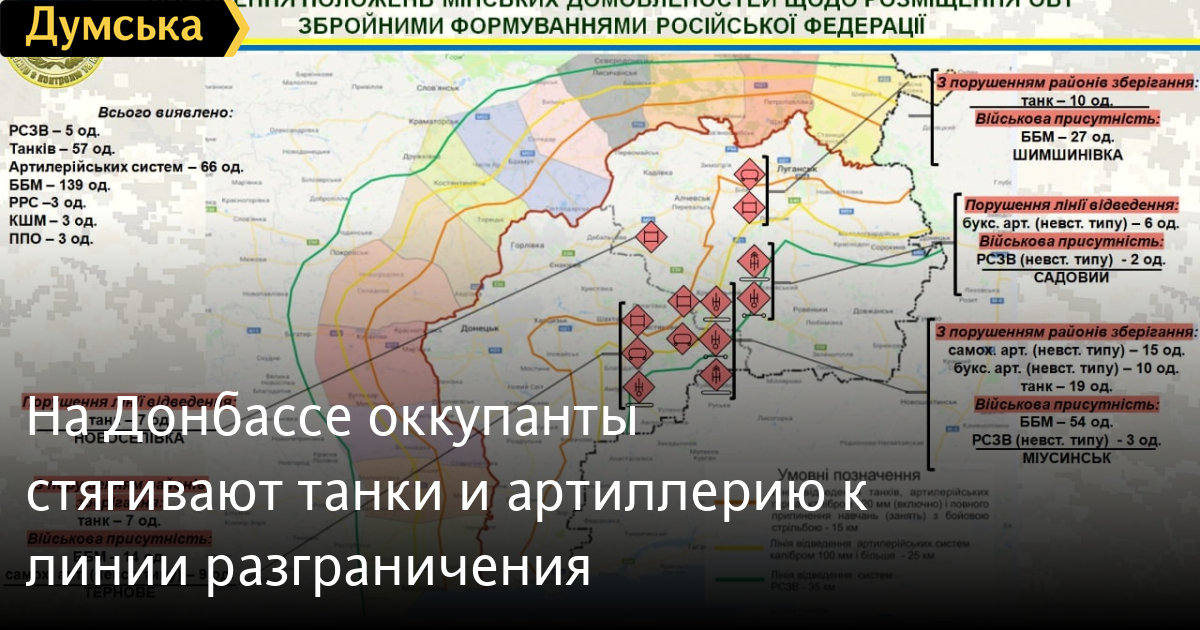 Российско-оккупационные войска на Донбассе подвели 275 единиц тяжелого вооружения – танки и артиллерийские системы – в непосредственную близость к линии фронта.
