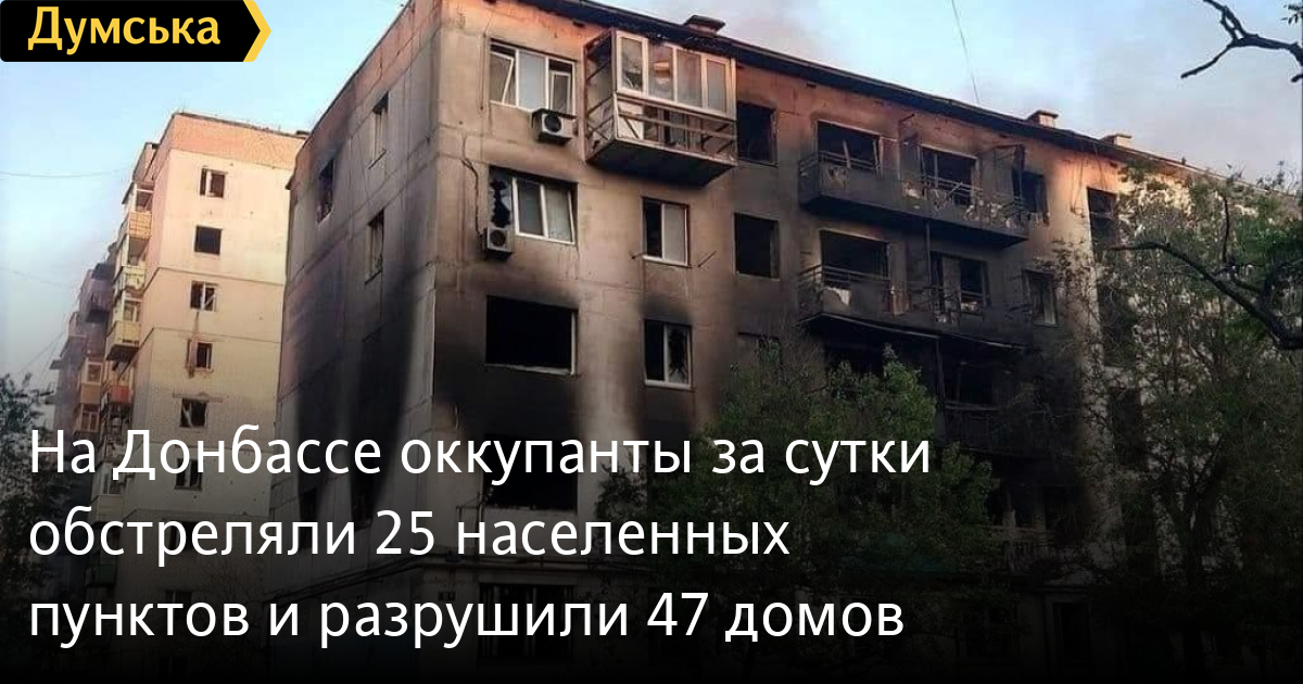 Всего под обстрелы противника вчера попали 25 населенных пунктов. В Донецкой области: Авдеека, Краматорск, Константиновка, Соледар, Марьинка, Нью-Йорк, Васильевка, Маяки, Сокол, Керами, Новомихайловка. В Луганской области: Северодонецк, Борисовское, Лисичанск, Приволье, Новодружеск, Белогоровка, Золотое, Горское, Комышеваха, Тошковка, Врубовка, Устиновка, Сиротино, Николаевка.