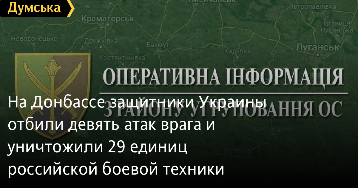 Защитники Украины на Донбассе 31 мая отразили девять атак врага и уничтожили 29 единиц техники. Бои на четырех локациях продолжаются.