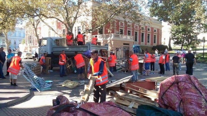 В эти минуты на Думской площади происходит разбор баррикад «Антитрухановского майдана». Разбор сопровождается небольшим пожаром.