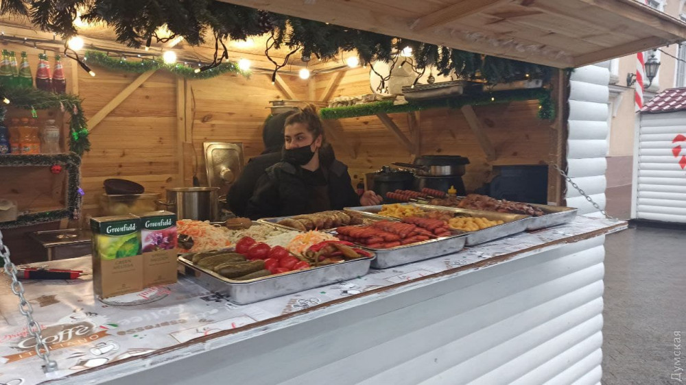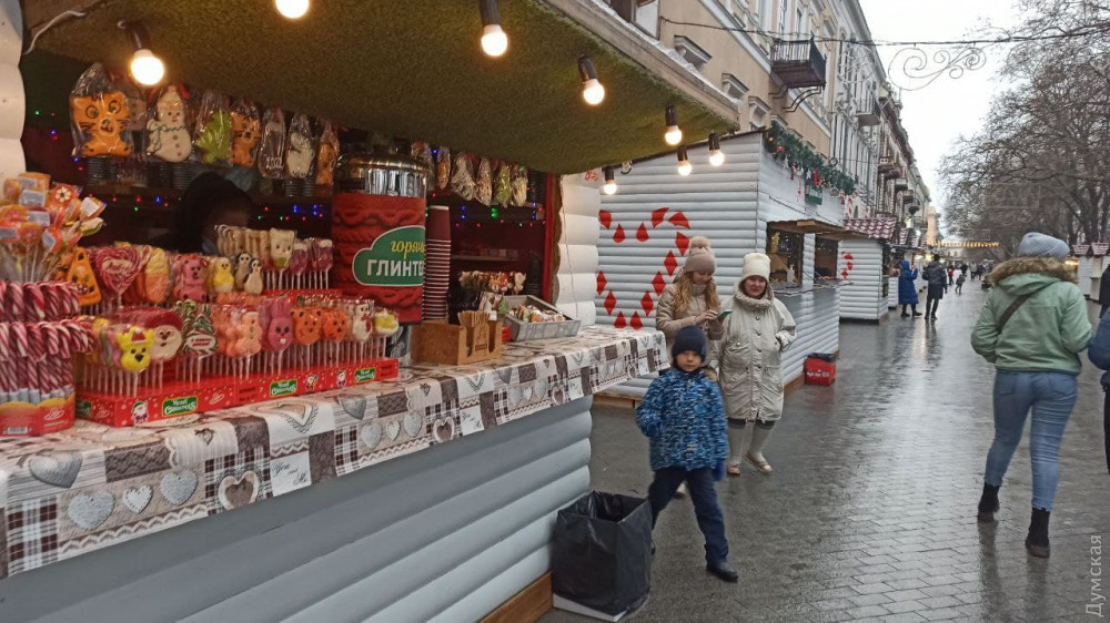 Вдоль Приморского бульвара уже установили ларьки новогодней ярмарки, в которых традиционно разливают глинтвейн, жарят сосиски и продают новогодние сувениры.