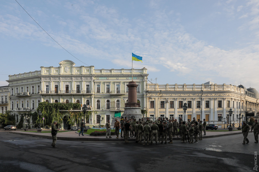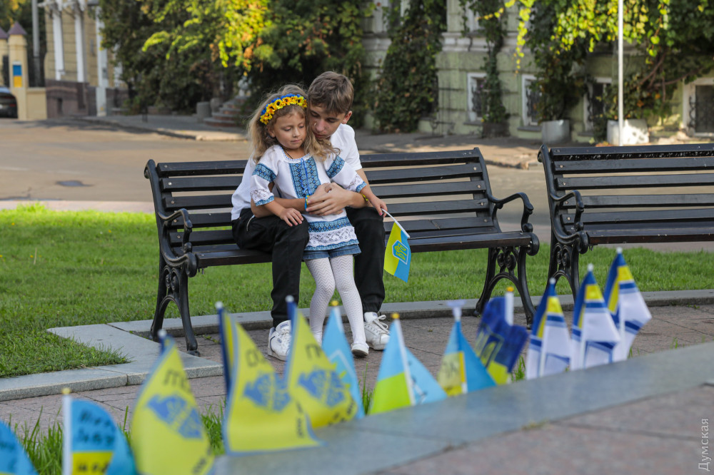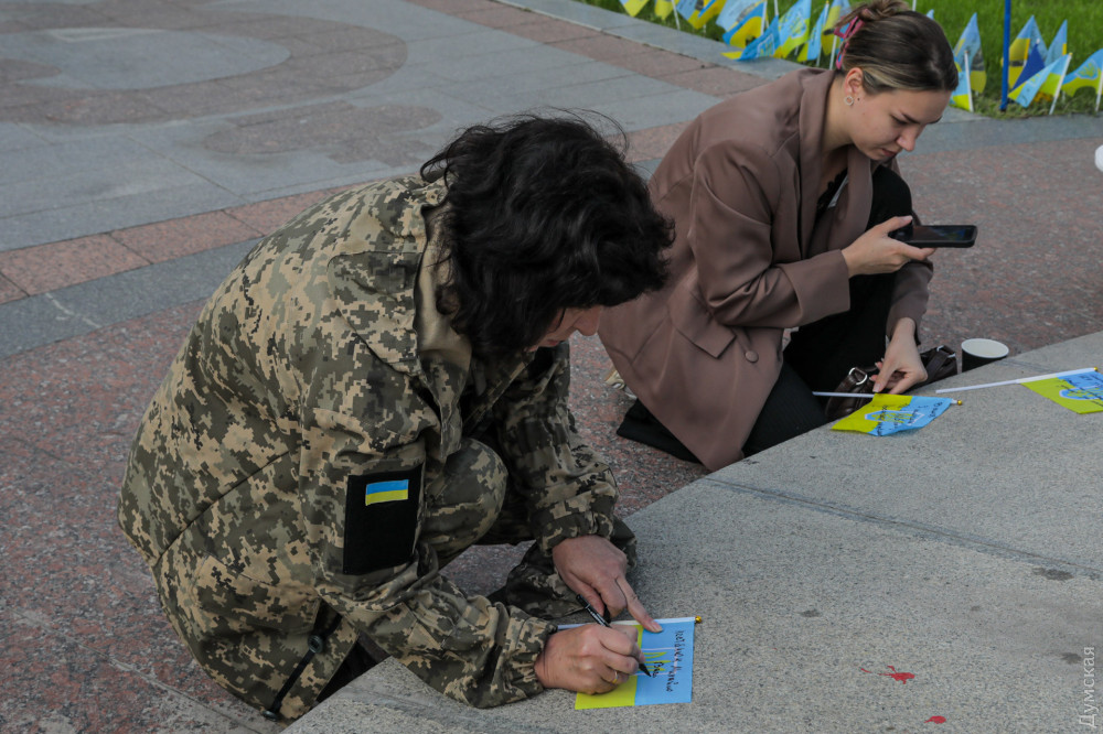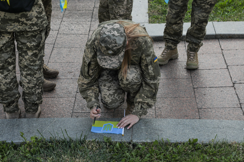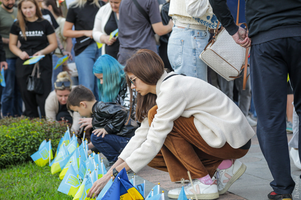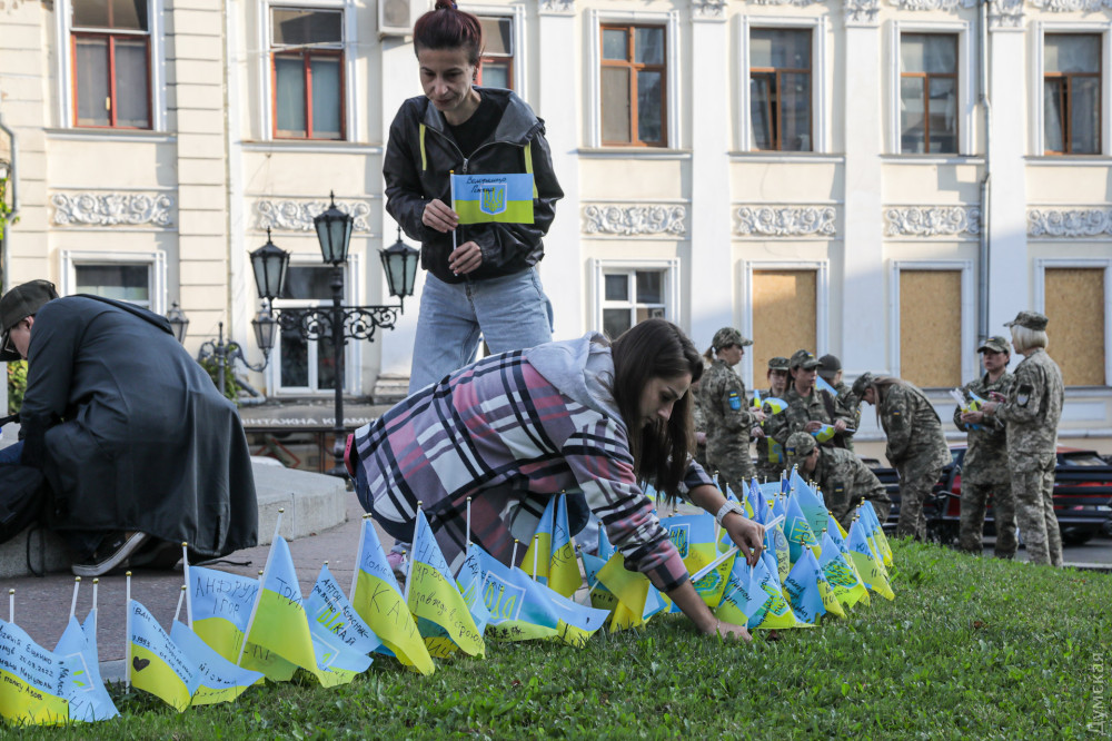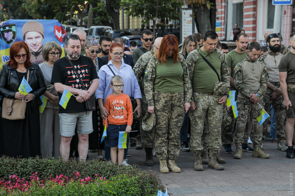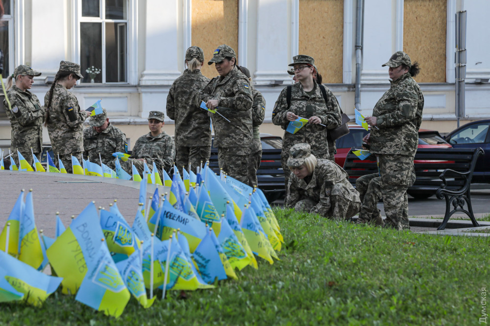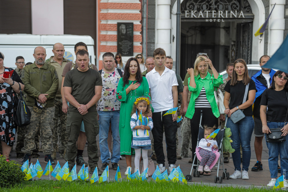 Військовослужбовці, представники патріотичних громадських організацій та родичі загиблих на фронті захисників України вранці 1 жовтня в Одесі на Катерининській площі вшанували пам'ять воїнів, які віддали життя в боротьбі з окупантами.