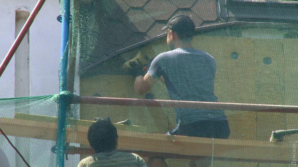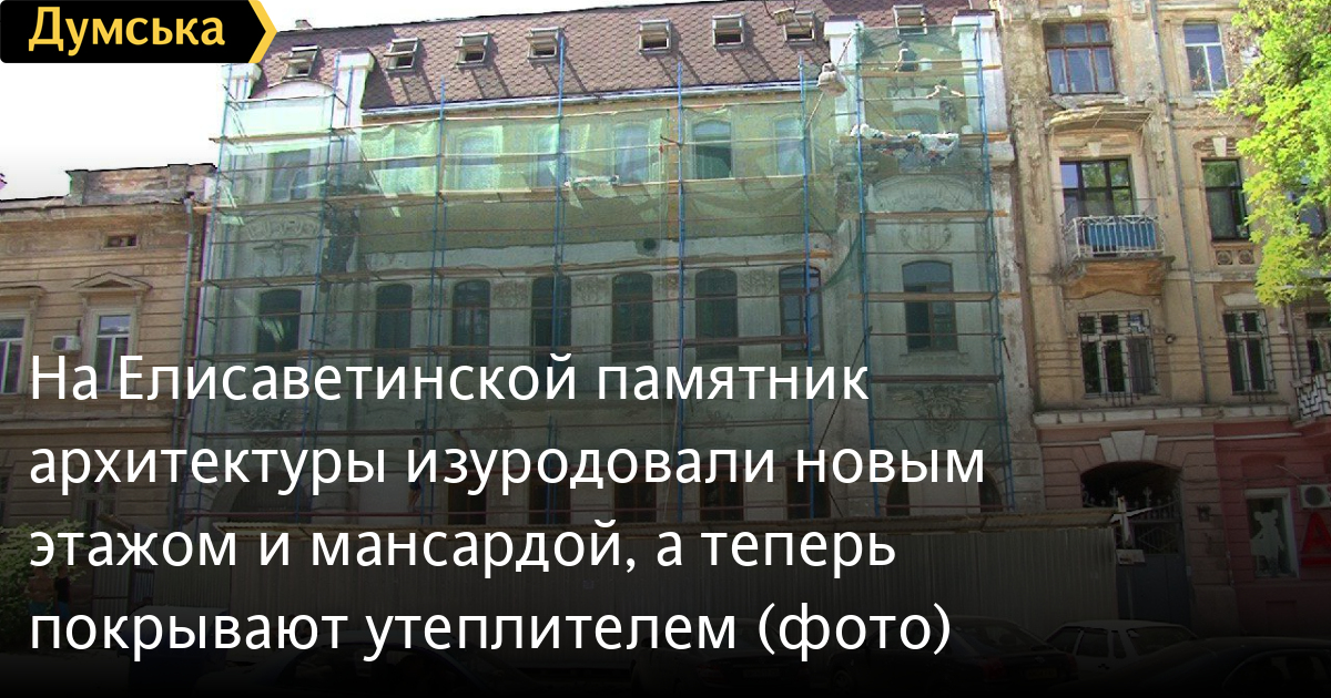 На Елисаветинской памятник архитектуры изуродовали новым этажом и мансардой, а теперь покрывают утеплителем