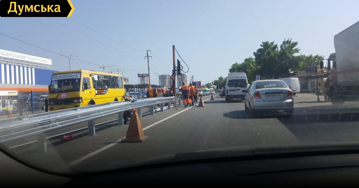 Максимально дебильное решение. Вместо того, чтобы отдать крайнюю правую полосу под парковку рынку (что, по факту, и так уже есть), и сделать еще две полосы в сторону Черноморки, они откусили два метра дороги под отбойник. Ясное дело, что никто из т.н. «проектировщиков» даже не выезжал на место работ.