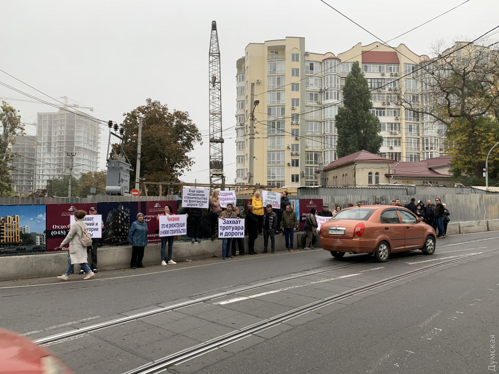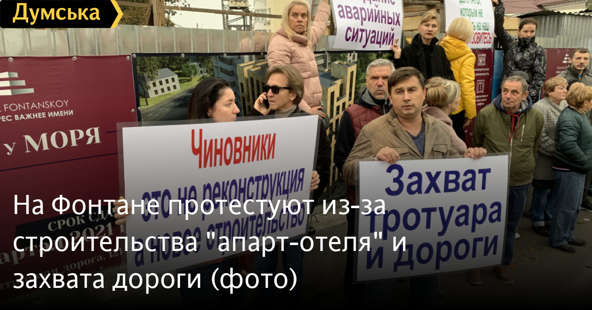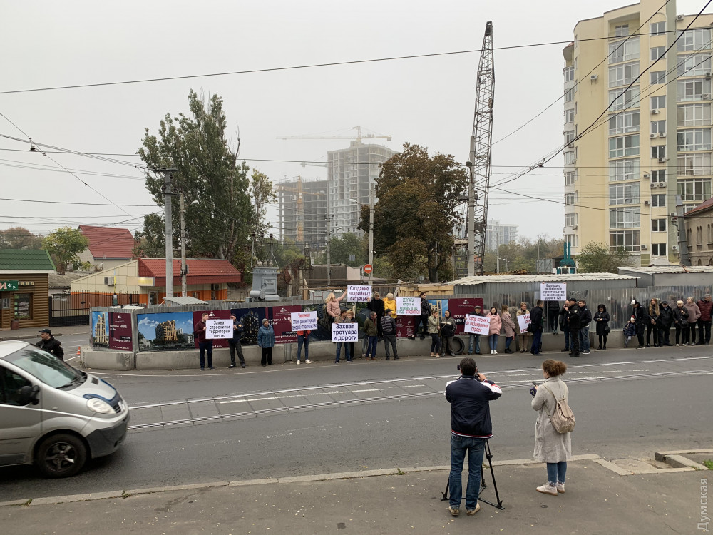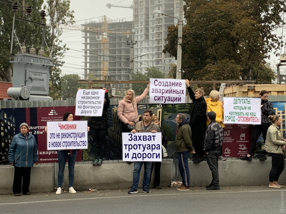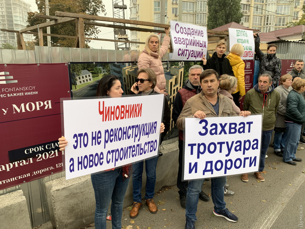 Строительство девятиэтажного «апарт-отеля» на 10-й станции Большого Фонтана вызвало протест местных жителей. Сегодня они собрались возле строительной площадки с плакатами и потребовали остановить работы, передает корреспондент «Думской».