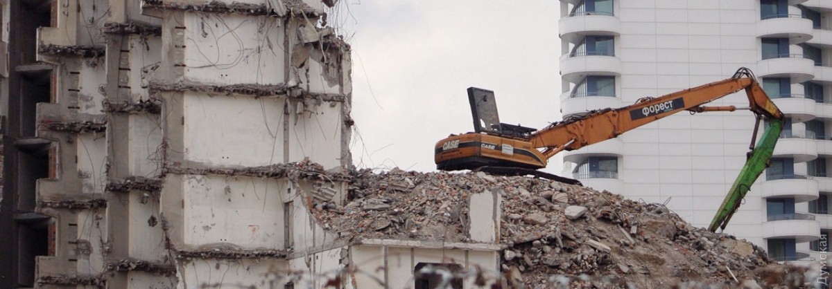 Демонтаж стен и перекрытий начался в прошлом году, на днях снос возобновили, передает корреспондент «Думской».