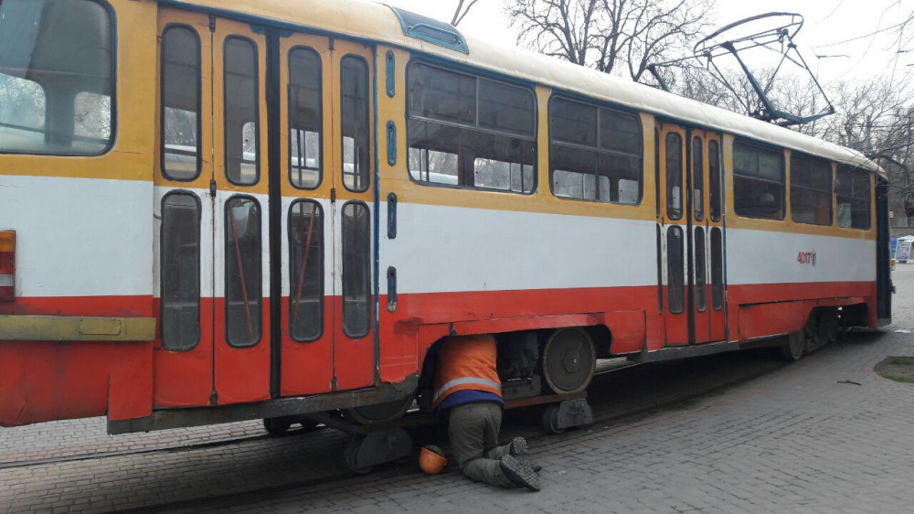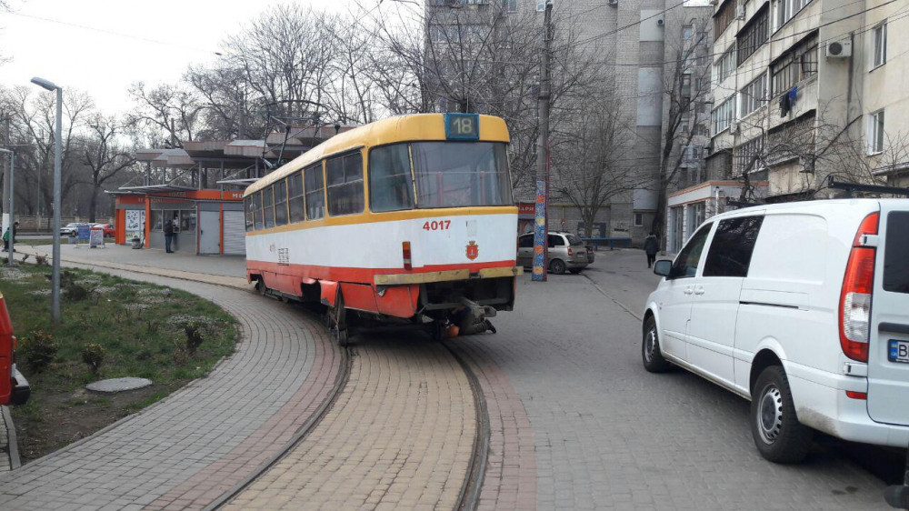 На 6-й станции Фонтана с рельсов сошел трамвай, ехавший по маршруту №18.
