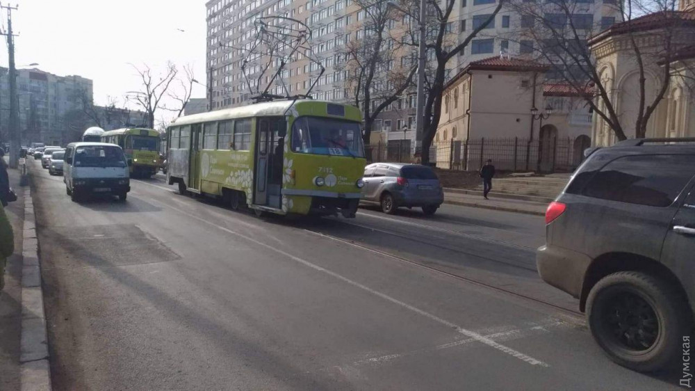 Движение трамваев по Фонтану временно остановлено из-за ДТП, которое произошло на 10-й станции.