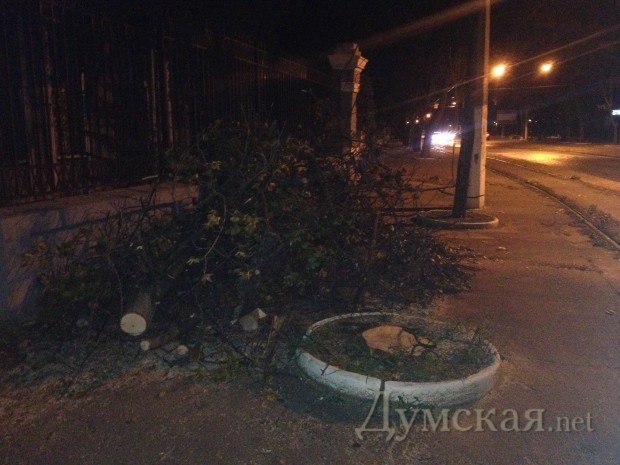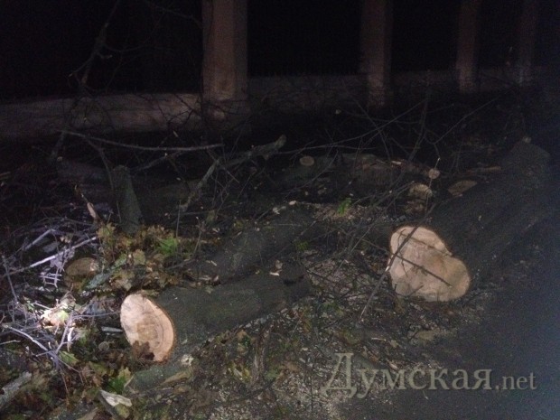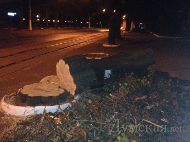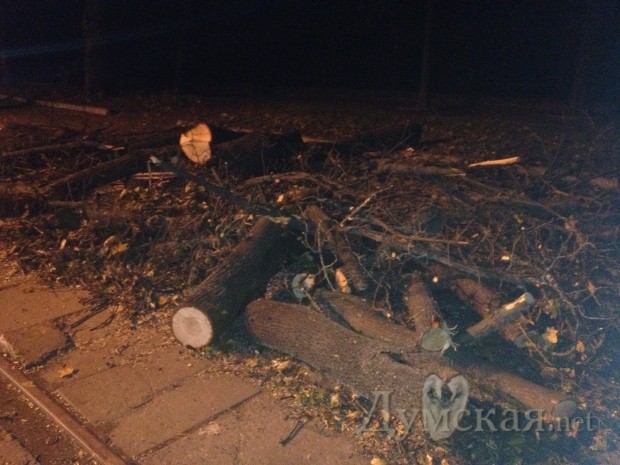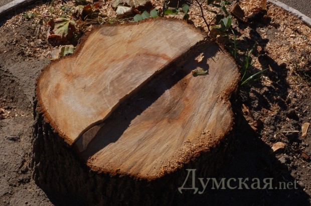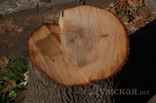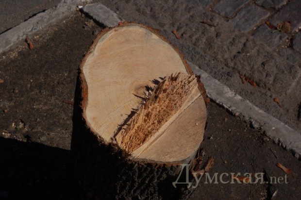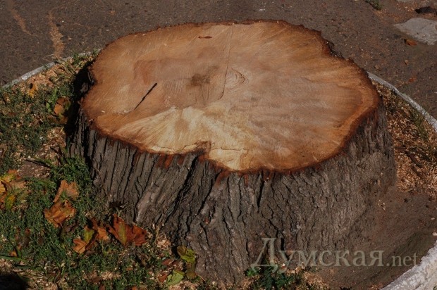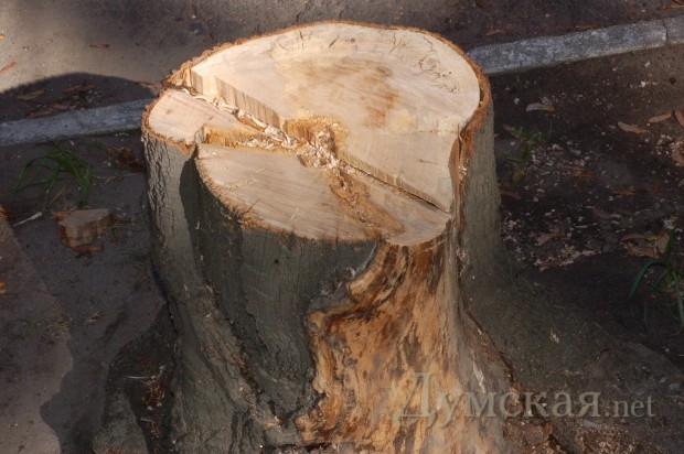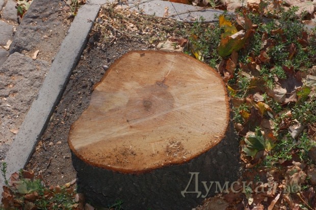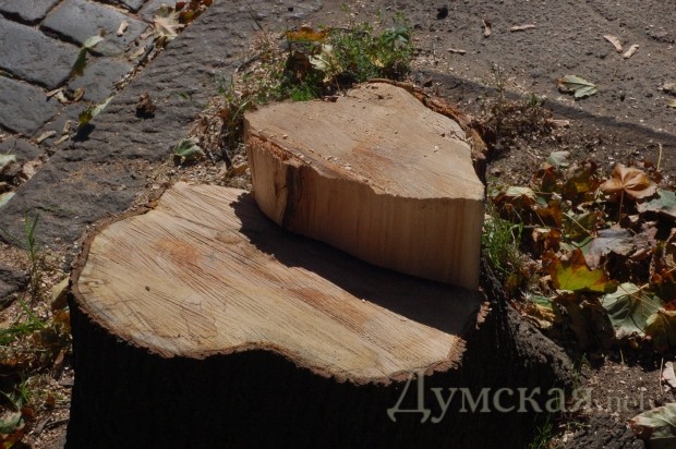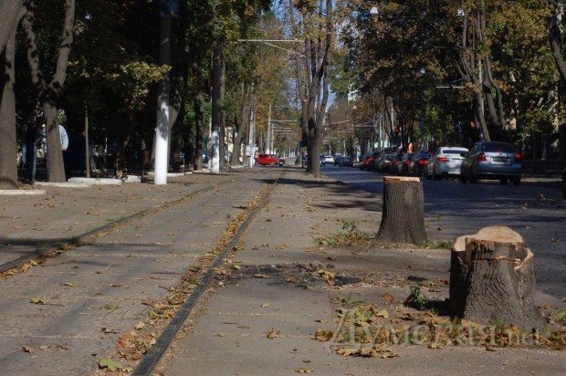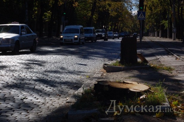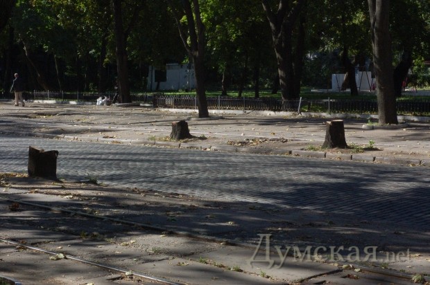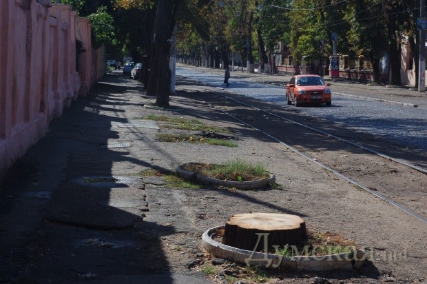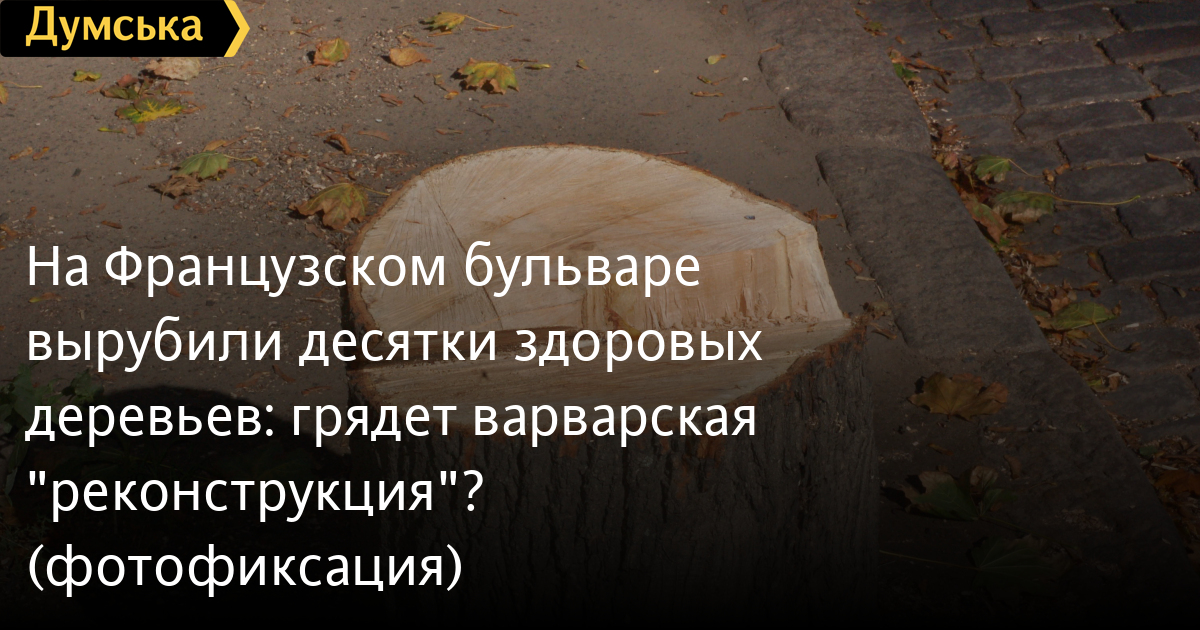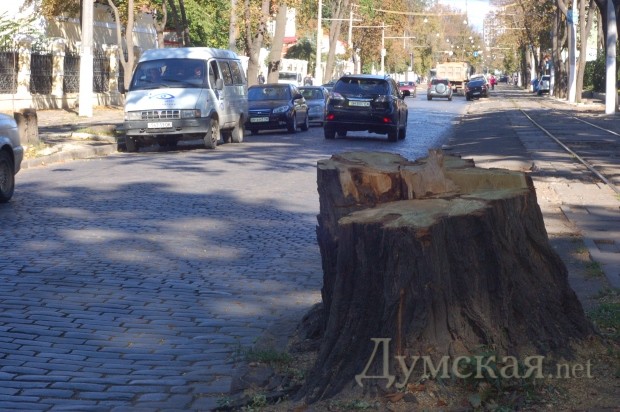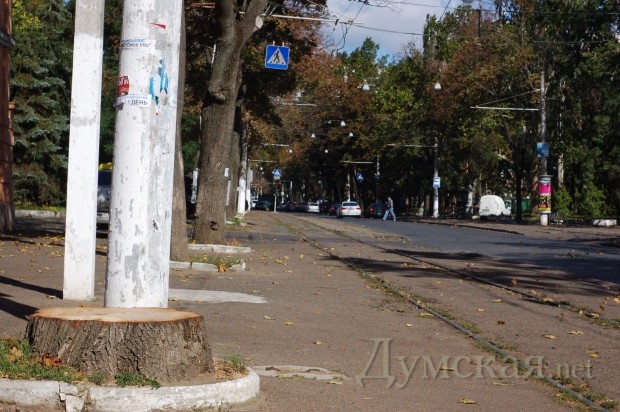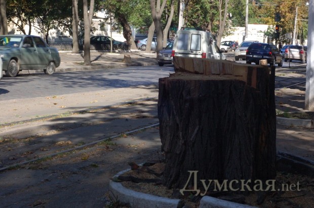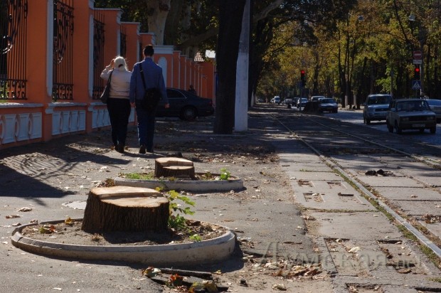 В ходе так называемой «санитарной подрезки», проведенной работниками КП «Горзелентрест», Французский бульвар лишился шести десятков молодых здоровых деревьев. В этом нетрудно убедиться — пеньки, не тронутые гниением, сиротливо торчат вдоль всей улицы.