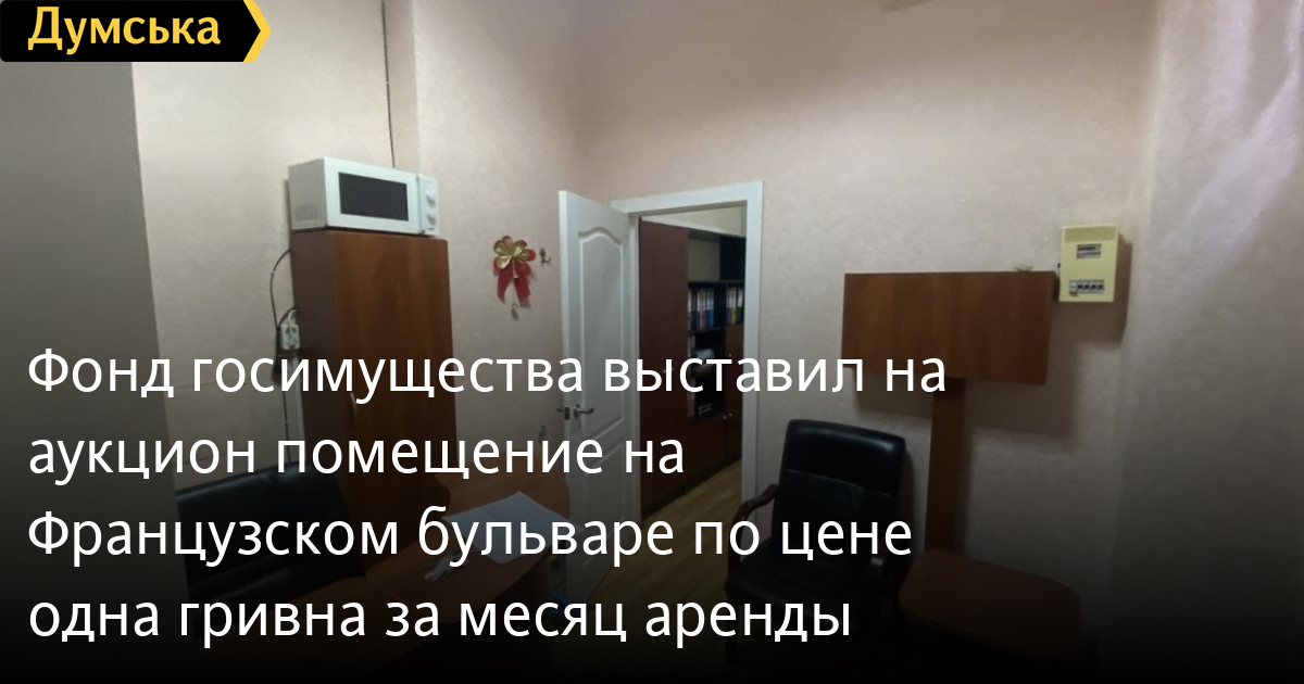 Нежилое помещение на Французском бульваре, 89 предлагает арендовать за одну гривну в месяц региональный Фонд государственного имущества Украины.