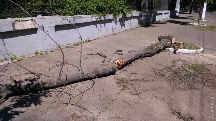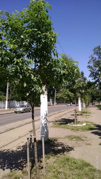 «К 10:00 уже удалили пять сухих кленов. Доверяй, но проверяй. Высаженные ранее («Горзелентрестом», — Ред.) ясени в этой части Французского бульвара чувствуют себя весьма неплохо. Процент здоровых перспективных деревьев по результатам нескольких сезонов посадок около 80%. Молодцы. Стараются. Рабатки и дорожное покрытие тротуара как после бомбежки», — отметил он.