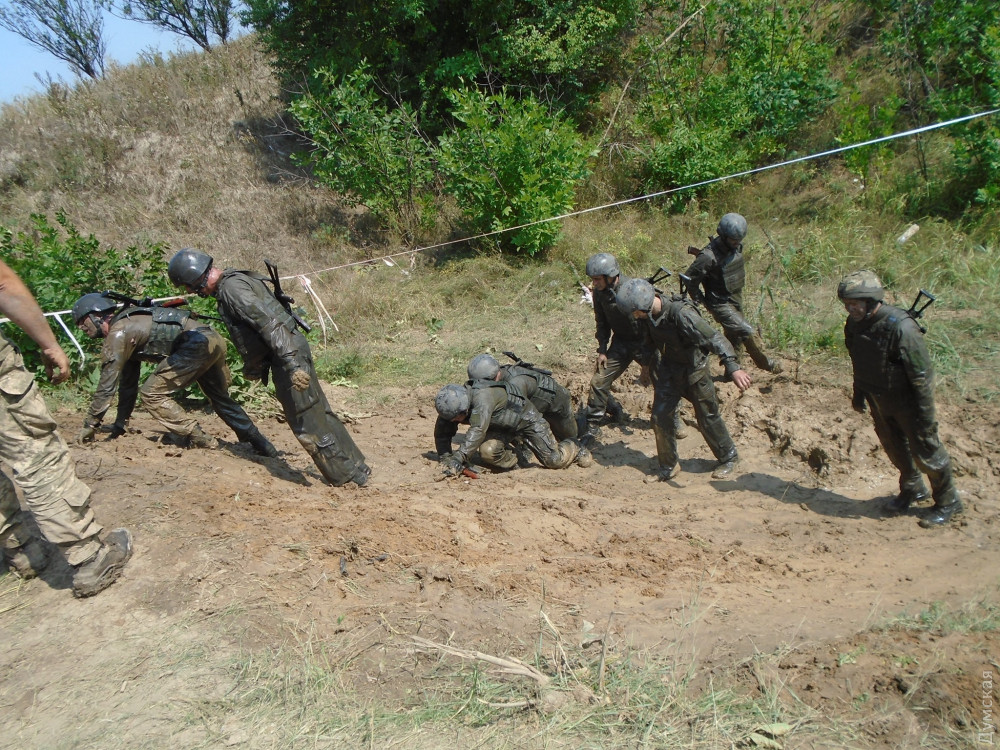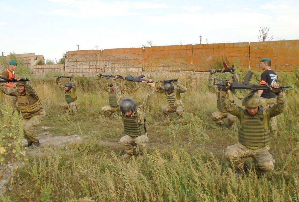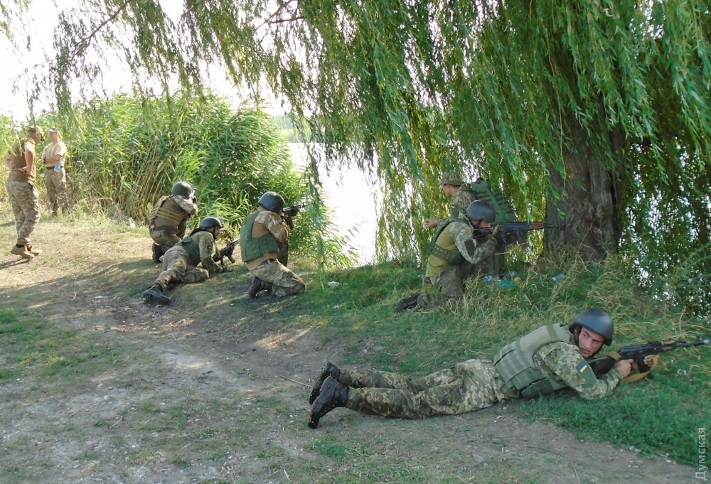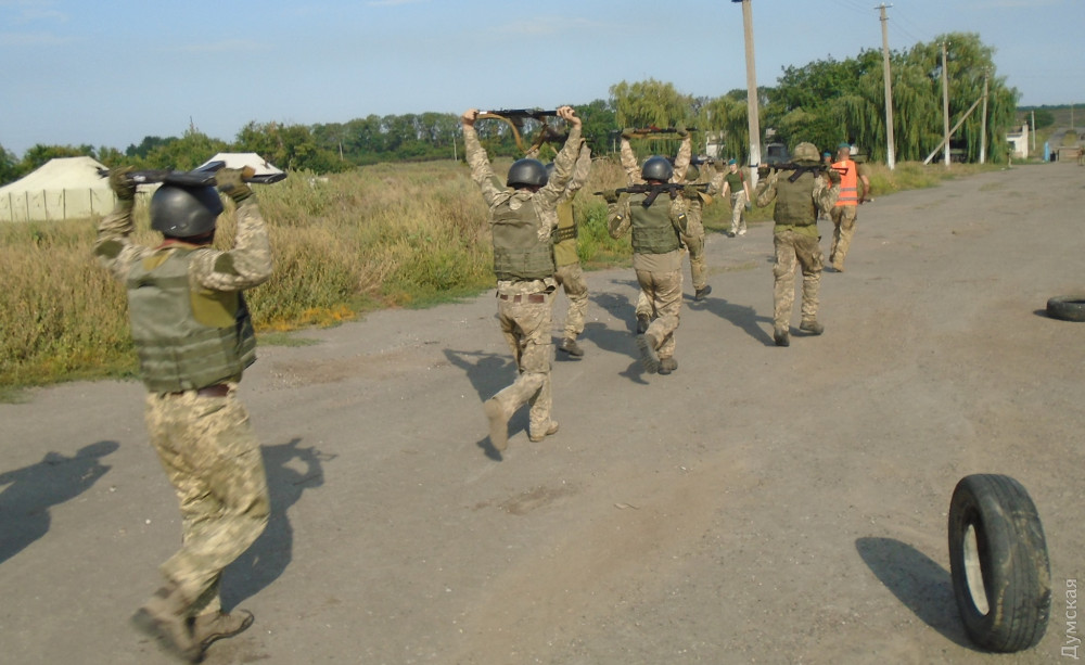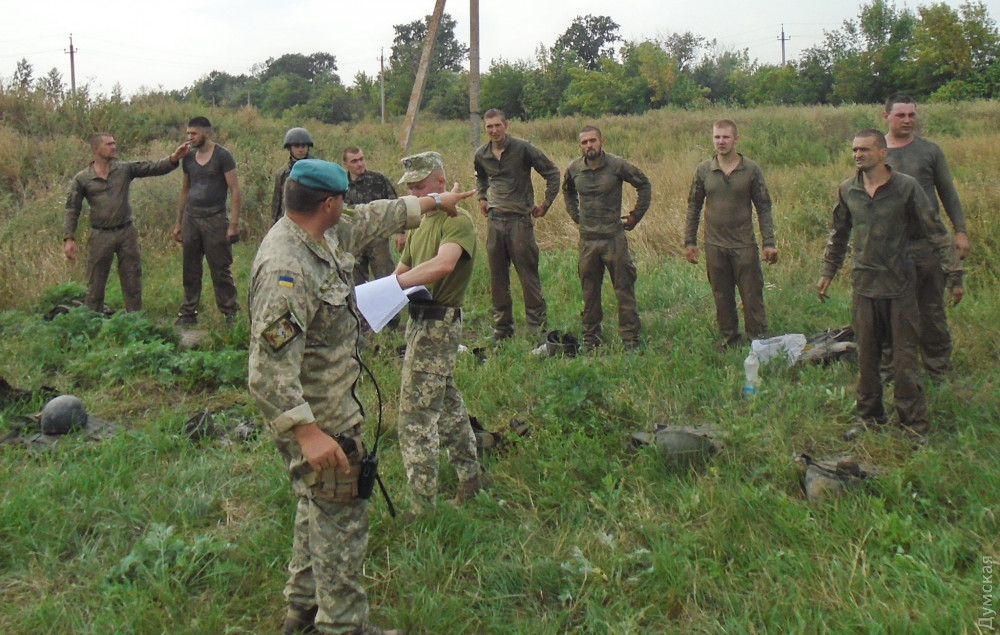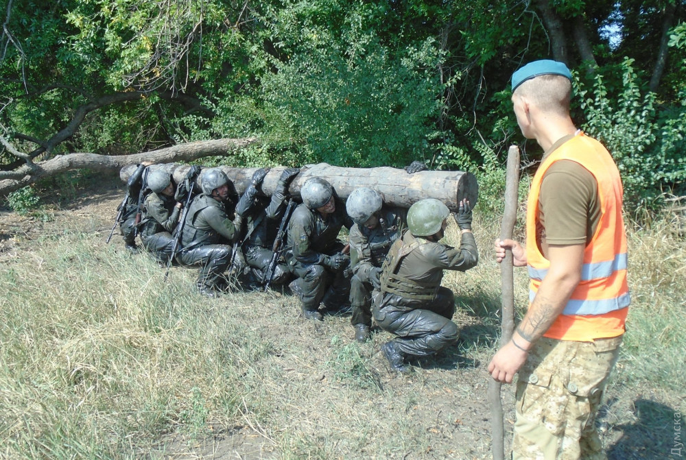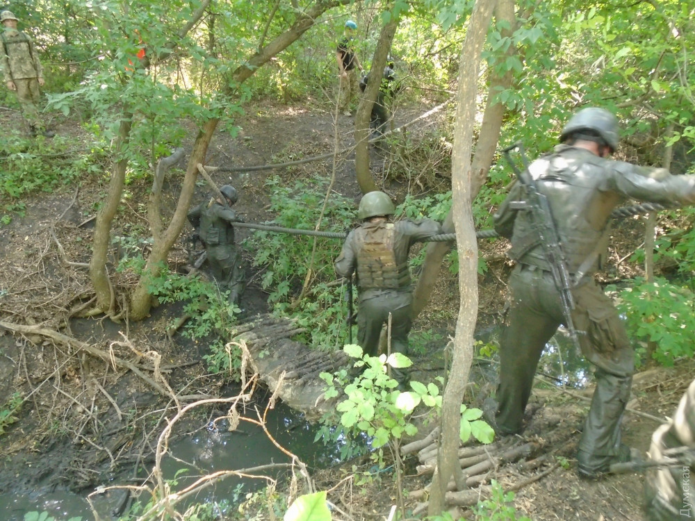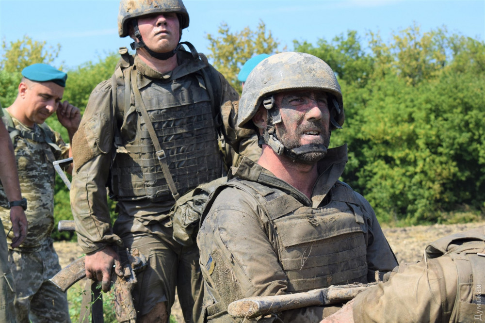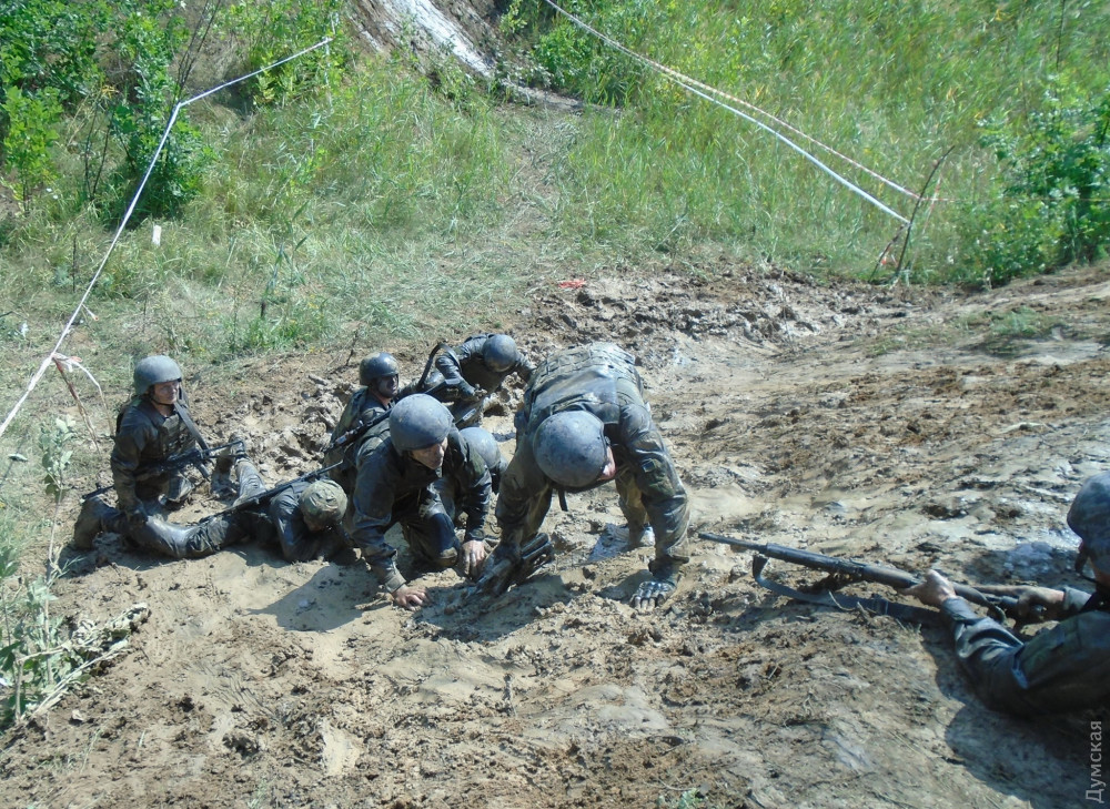 Бойцы одесского и болградского батальонов прошли пятикилометровую полосу препятствий, созданную на довольно сложной местности.