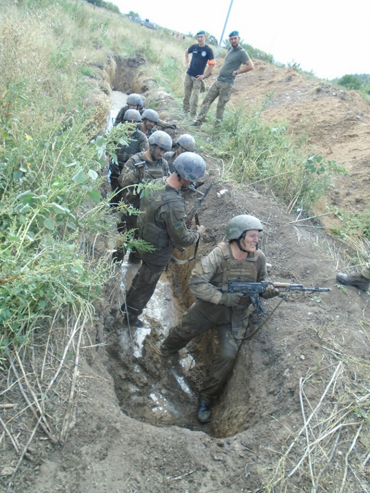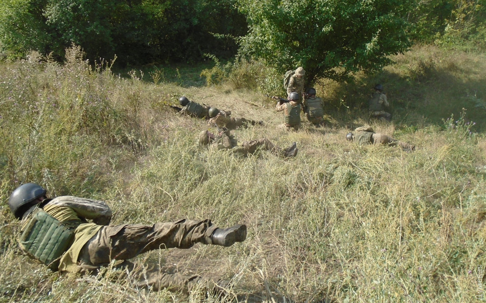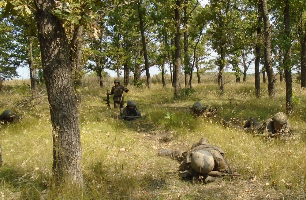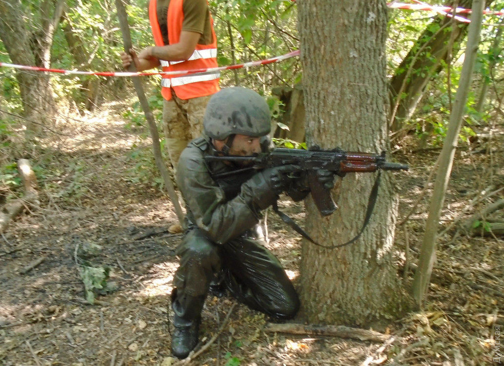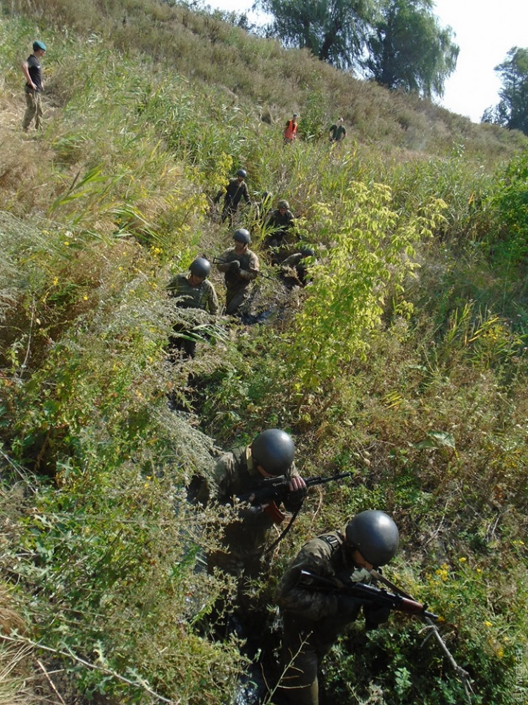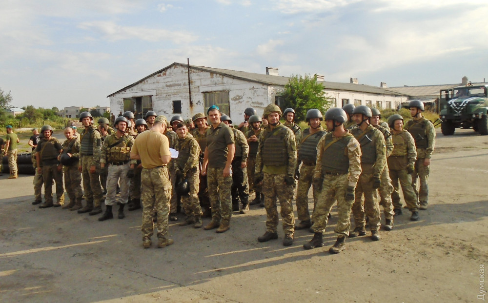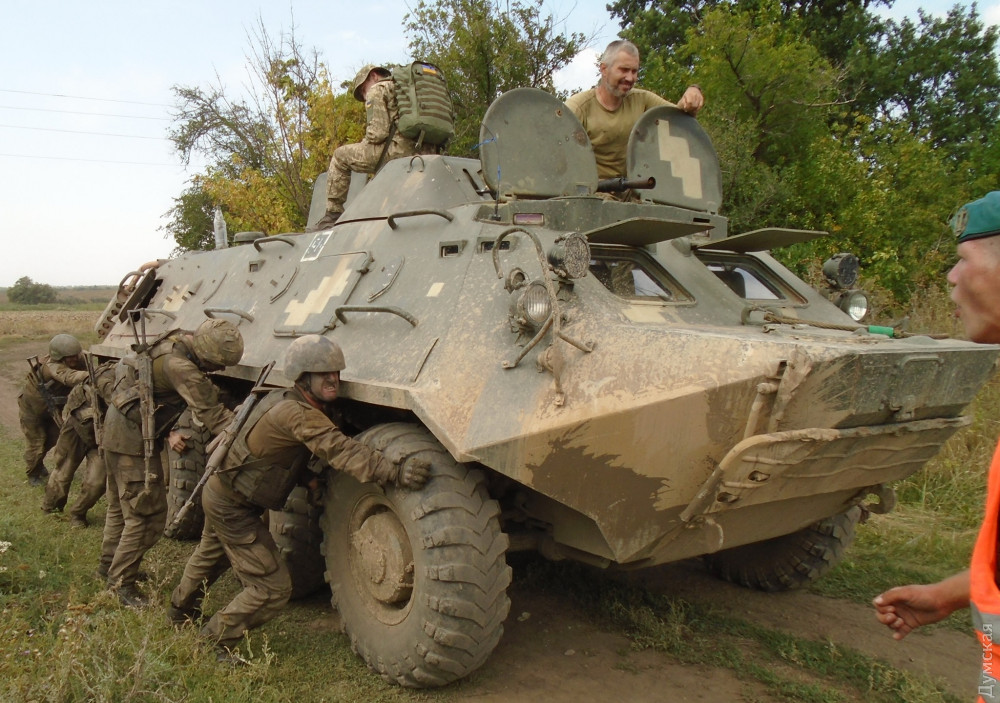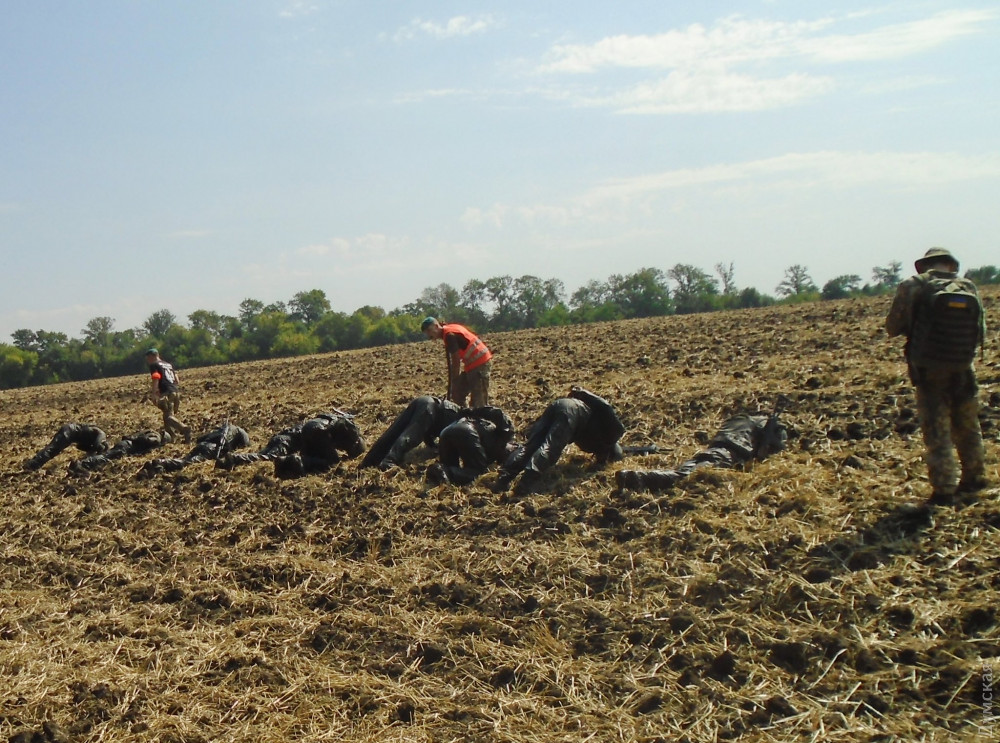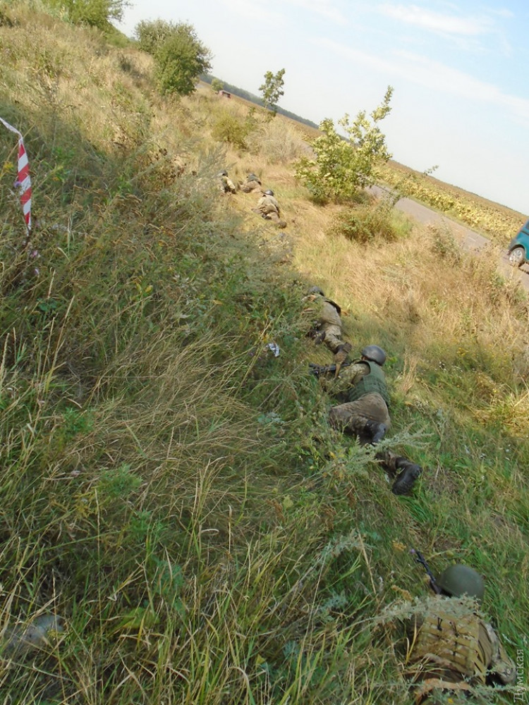 Бойцы одесского и болградского батальонов прошли пятикилометровую полосу препятствий, созданную на довольно сложной местности.