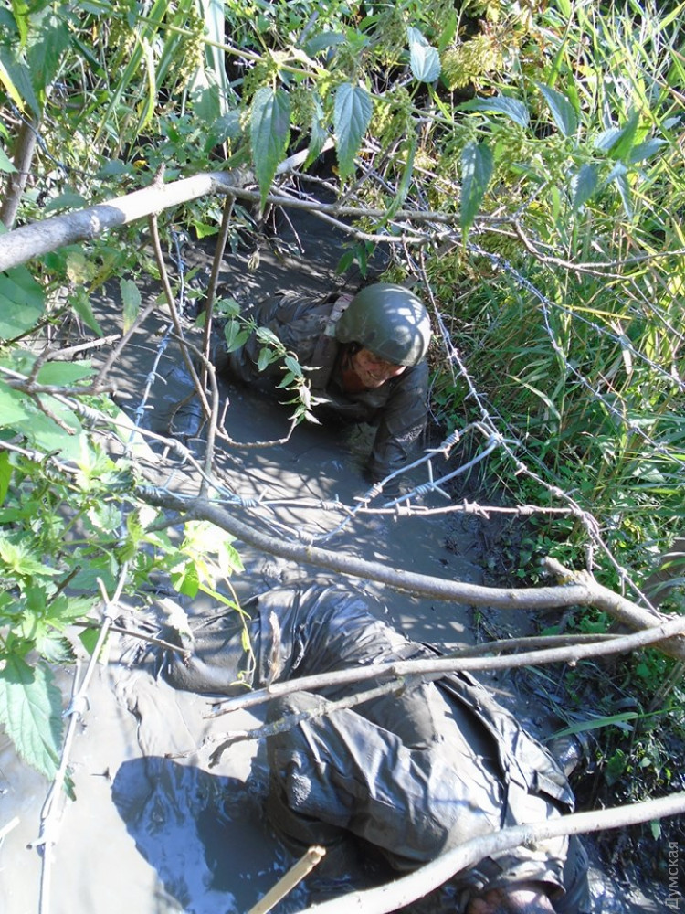 В полном снаряжении, со штатным оружием, они преодолели несколько водоемов, ползали в грязи и колючих кустах, стреляли, носили тяжести. При этом на воинов оказывалось постоянное психологическое воздействие, целью которого было добиться максимального реализма происходящего: инструкторы угрожали или предлагали сдаться, жгли дымовые шашки, бросали взрывпакеты, над лежащими солдатами проезжали боевые машины.