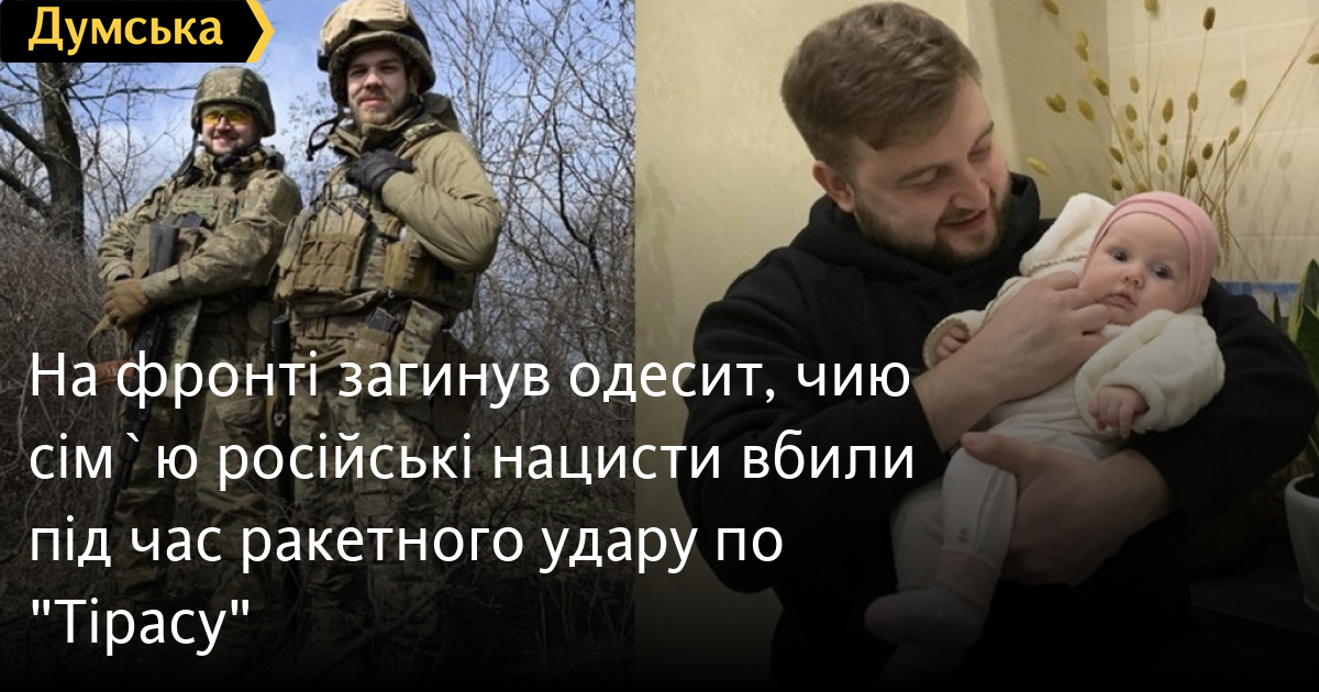 Одесит Юрій Глодан, чия дружина, тримісячна дочка і теща загинули внаслідок ракетного удару по ЖК «Тірас» у квітні 2022 року, склав голову на фронті.
