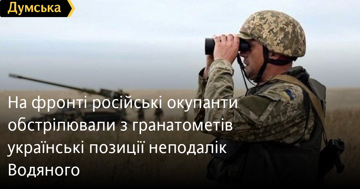 Як повідомляють у штабі ООС, неподалік Водяного окупанти обстрілювали позиції українських захисників з ручних та станкових протитанкових гранатометів.