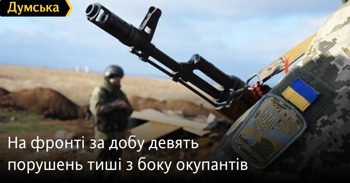 Збройні формування Російської Федерації за минулу добу дев’ять разів порушили режим припинення вогню в районі проведення операції Об’єднаних сил.