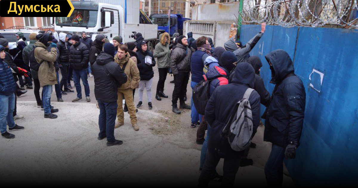 Местные жители пытаются перекрыть въезд. Их поддерживают активисты Национального корпуса. Периодически возникают конфликты и толкотня с полицией.