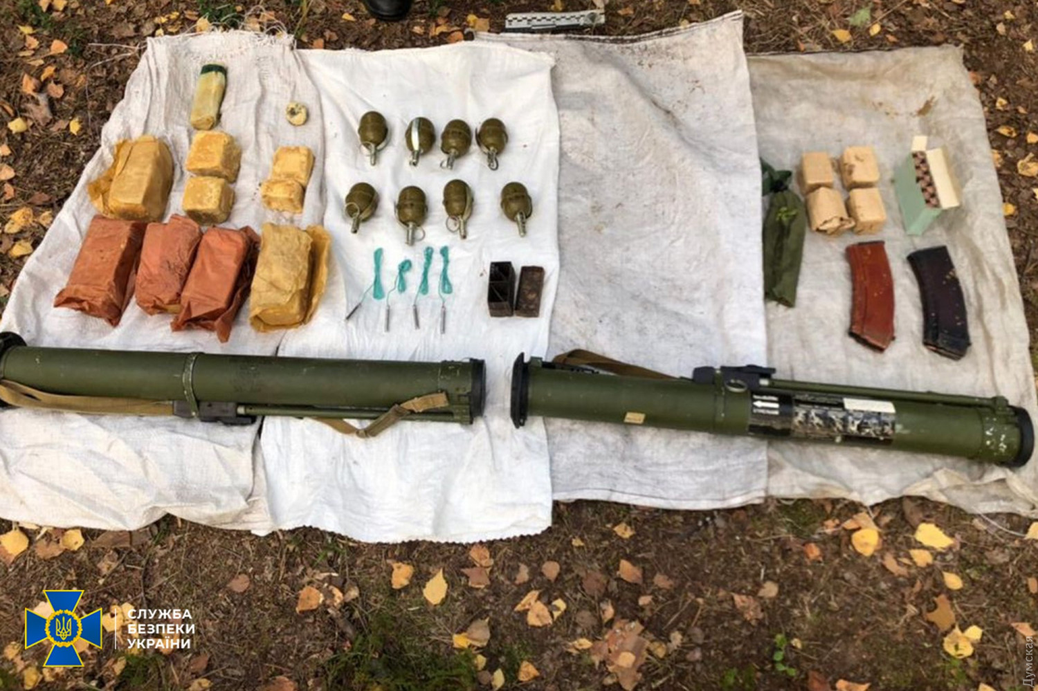 На кордоні з Білоруссю під час антитерористичних навчань знайшли схрон зі зброєю та вибухівкоюСхрон із військовими засобами ураження та вибухівкою виявили під час антитерористичних навчань у Рівненській області співробітники Служби безпеки України. Як повідомляє прес-центр СБУ, арсенал заховали у лісосмузі поблизу селища Бутове, яке межує з Республікою Білорусь. Серед знайденого — дві реактивні протитанкові гранати РПГ-26, вісім ручних гранат РГД-5 із запалами до них, п'ять кілограмів вибухової речовини (попередньо пластид), два магазини до АК-74, 170 патронів калібру 5,45 та 7,62. Тайник знайшли під час відпрацювання прикордонної смуги державного кордону України в ході однієї із фаз навчань СБУ. Вилучені боєприпаси та засоби ураження направлено на проведення вибухо-технічних експертиз. Тривають слідчі дії, відкрито кримінальне провадження за ч. 1 ст. 263 (зберігання боєприпасів, вибухових речовин без дозволу) КК України.