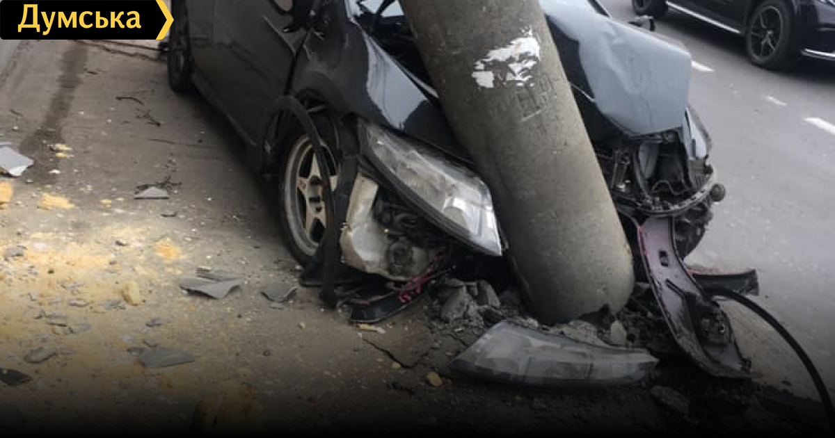 Автомобиль «Хонда цивик» снес бетонную опору наружного освещения на улице Грушевского в Одессе.