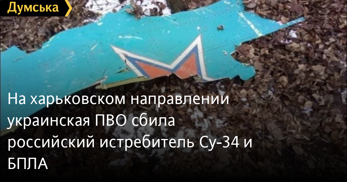 Российский истребитель-бомбардировщик Су-34 и беспилотник сбила противовоздушная оборона ВС Украины на харьковском направлении.