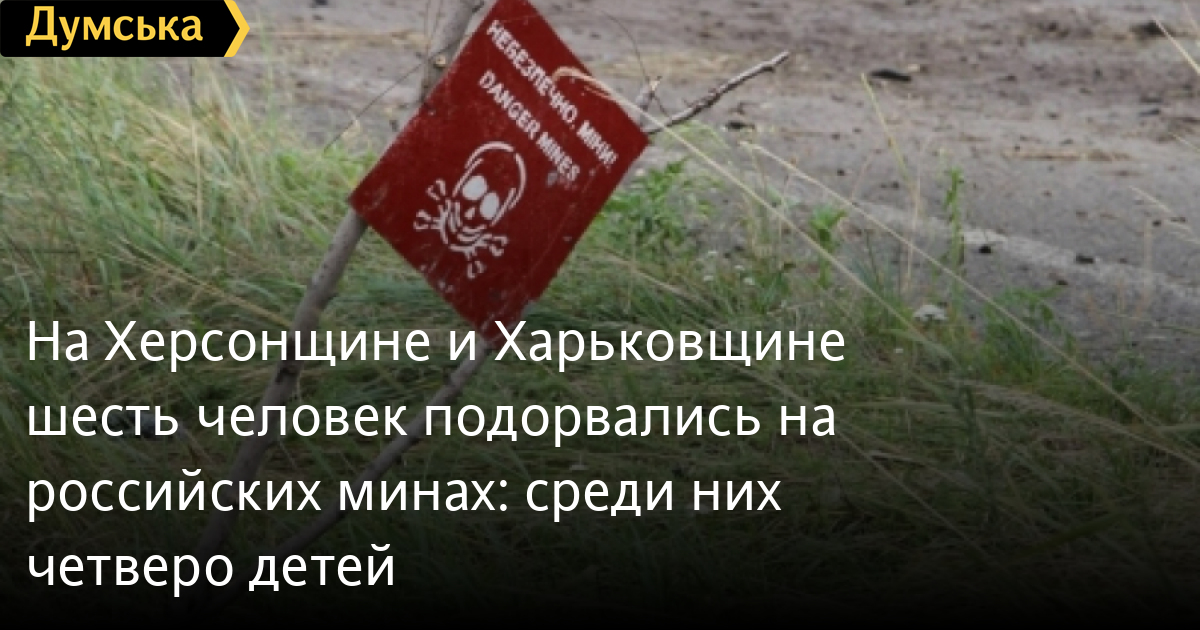 На Херсонщині та Харківщині шестеро людей підірвалися на російських мінах: серед них четверо дітейШестеро осіб підірвалися на мінах в деокупованих районах Херсонщини та в Харкові. Серед травмованих — четверо дітей, повідомив заступник голови Офісу Президента Кирило Тимошенко. В Херсонській області цивільні наїхали на міну, яку залишили після себе окупанти. Четверо поранених, серед яких дві дитини 9 та 14 років. Крім того, двоє підлітків підірвалися на вибуховому пристрої у Салтівському районі Харкова. «Двоє хлопчиків 15 та 12 років у кущах біля дому знайшли вибуховий предмет, який детонував. У дітей осколкові поранення. Зараз лікарі надають постраждалим усю необхідну допомогу. Їхній стан оцінюють як середньої важкості», — написав Тимошенко. СМЕРТЬ РОСІЙСЬКИМ ОКУПАНТАМ! Помітили помилку? Виділяйте слова з помилкою та натискайте control-enter |