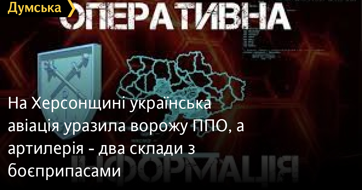 Як повідомляють в оперативному командуванні «Південь», українська тактична авіація уразила засоби ворожої протиповітряної оборони в Херсоні, опорний пункт в Новопетрівці та скупчення живої сили та техніки там же й в Ольгиному.