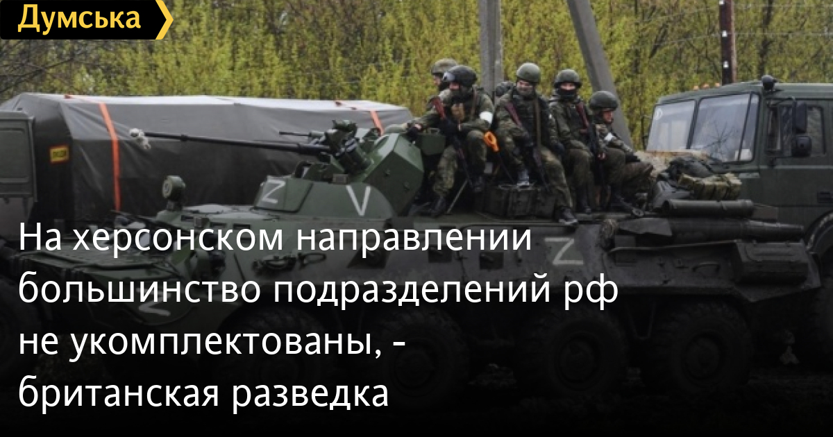 На херсонському напрямку більшість підрозділів рф не укомплектовані, — британська розвідкаБільшість російських підрозділів на херсонському напрямку не укомплектовані і залежать від слабких ліній постачання через поромні переправи та понтонні мости через річку Дніпро. Про це повідомило Міноборони Великої Британії. «49-а загальновійськова армія Південного військового округу з великою ймовірністю була посилена компонентами 35-ї загальновійськової армії Східного військового округу. Більшість підрозділів навколо Херсона не укомплектовані та залежать від слабких шляхів постачання через поромні переправи та понтонні мости через Дніпро», — уточнили у військовому відомстві. Там додали, що така інтеграція підрозділів 49-ї та 35-ї армій свідчить про значну реорганізацію російських сил в Україні. «Існує реалістична можливість того, що росія зробила крок до раціоналізації кількох напівнезалежних оперативних командувань, які сприяли її поганій роботі на початку вторгнення», — наголосили в Міноборони Британії. У відомстві зазначили, що якщо Україні вдасться провести тривалі наступальні операції, згуртованість цієї неперевіреної структури, можливо, стане ключовим фактором сталості російської оборони на південному напрямку. СМЕРТЬ РОСІЙСЬКИМ ОКУПАНТАМ! Помітили помилку? Виділяйте слова з помилкою та натискайте control-enter |
