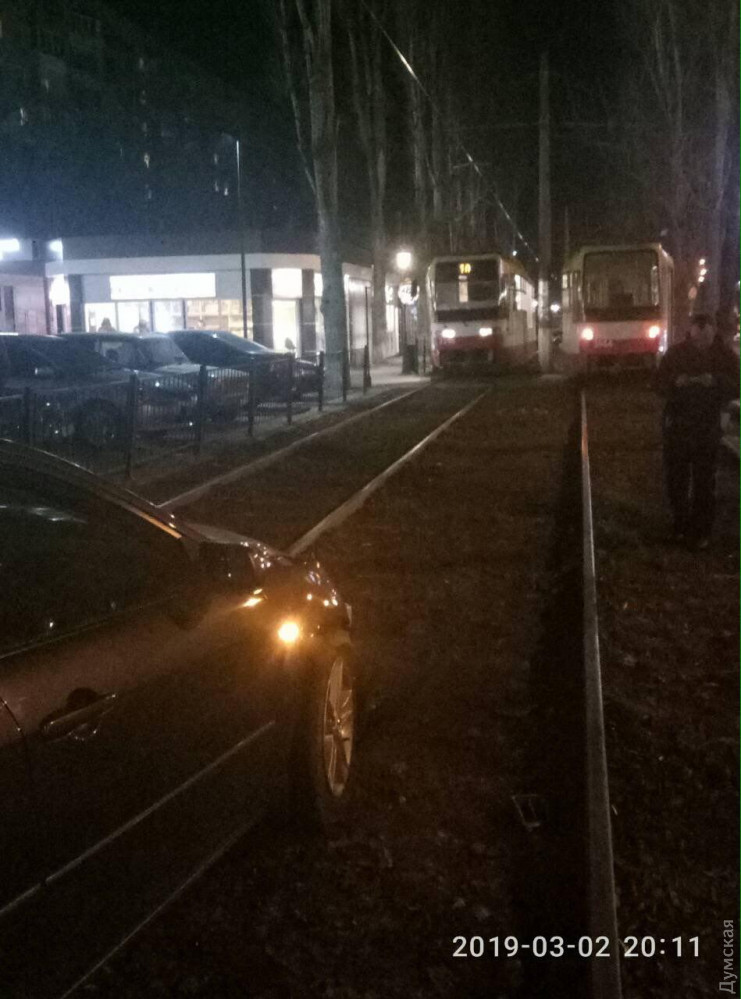 Как передает корреспондент «Думской», легковушка вылетела на трамвайные пути между площадью Деревянко и Рекордной.