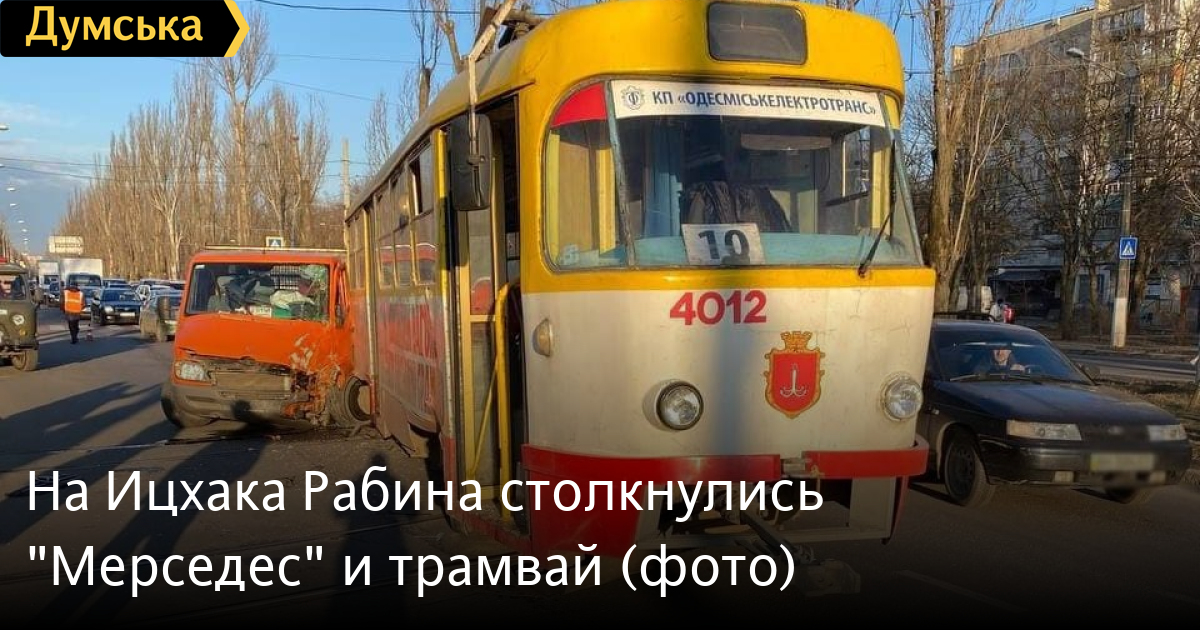 Дорожно-транспортное происшествие с участием трамвая случилось сегодня днем на улице Ицхака Рабина в Одессе.