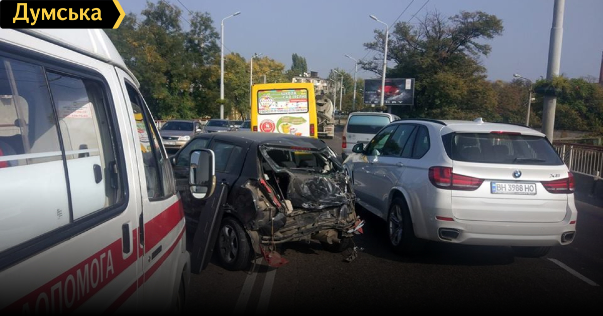 Авария с участием сразу пяти автомобилей произошла сегодня на Ивановском мосту Одессы.
