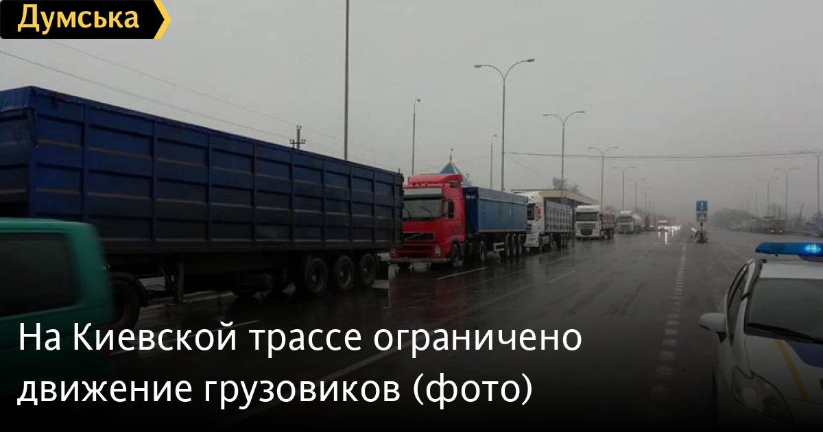 «В связи с ухудшением погодных условий в виде мокрого снега, дождя и сильного ветра с 10:30 ограничено движение грузовиков на участке дороги М-05 Киев — Одесса (км 273 + 210 - км 450 + 500)», — говорится в сообщении.
