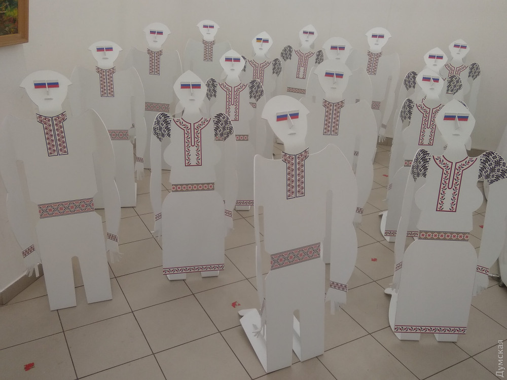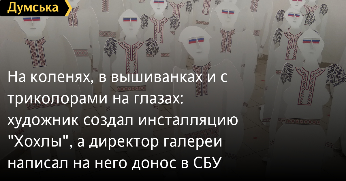 Украинский художник Иван Салевич создал инсталляцию с фигурами людей в вышиванках и с российским триколором в глазах, стоящими на коленях — как символ пятой колонны, которая еще слишком велика в Украине. Об этом сообщает Cуспільне.Инсталляция «Хохлы» должна была стать частью выставки ко Дню независимости в галерее «Вернисаж» в Черновцах.