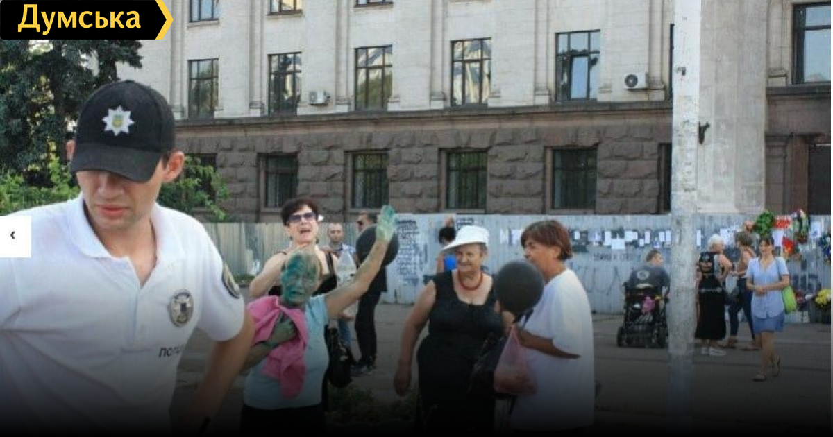 «На импровизированном митинге вспоминали также певца Кобзона и лидера российских боевиков Александра Захарченко. Несколько человек из числа неизвестных патриотов не смогли пройти мимо и облили зеленкой лидера куликовцев Мориса Ибрагима и Нину Кочановскую, активную участницу сепаратистского движения нашего города», — написали на странице «Правого сектора» Одессы.