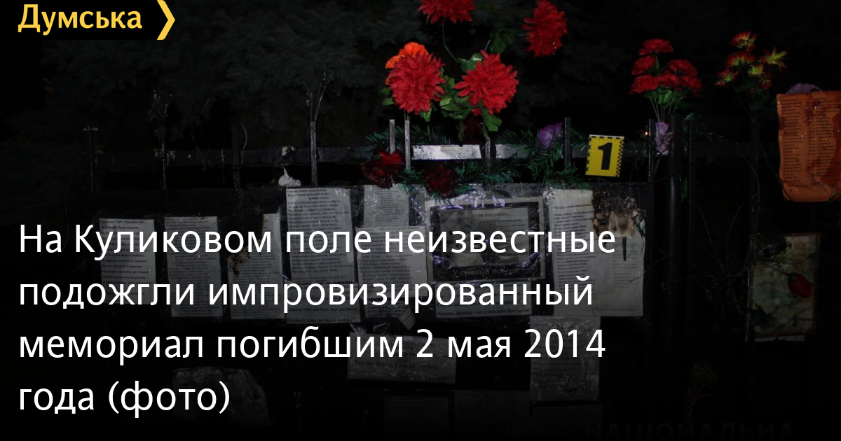 Неизвестные подожгли цветы и записки в память о погибших 2 мая 2014 года, которые висят на заборе у Дома профсоюзов на Куликовом поле.