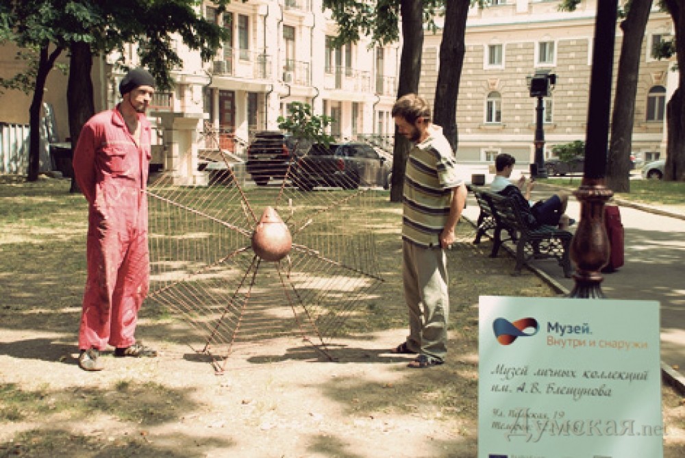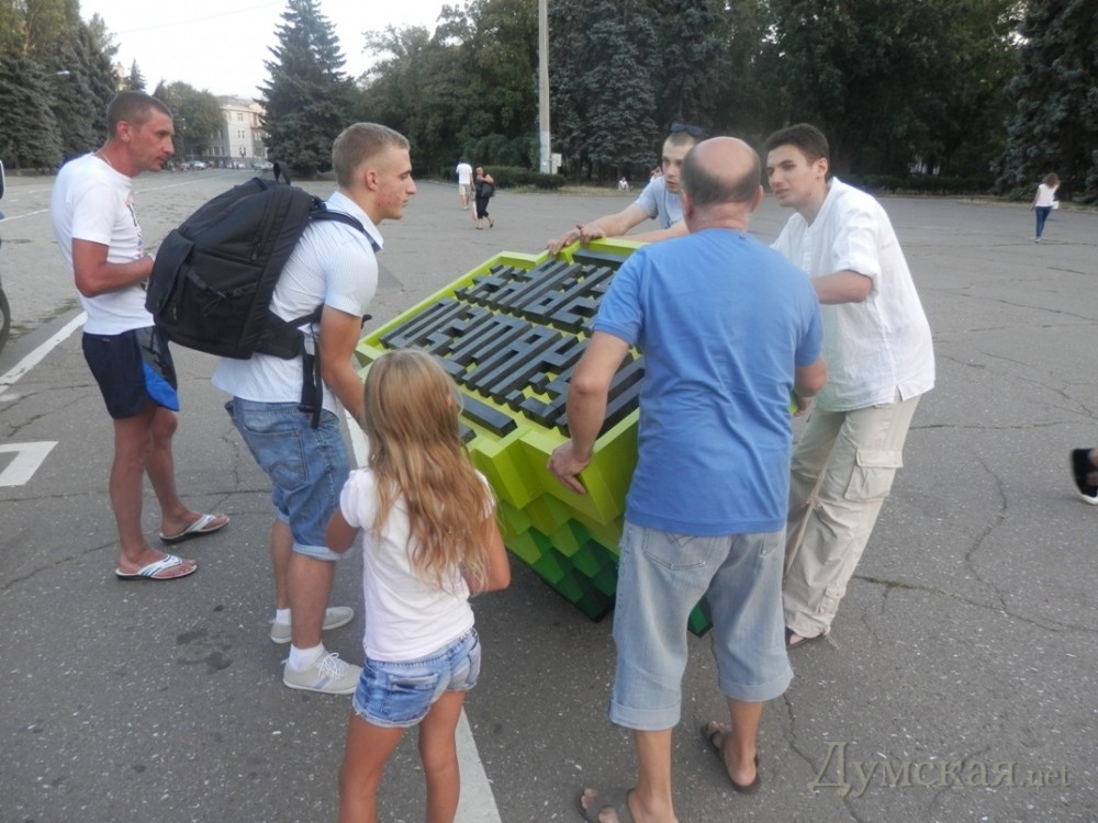 В рамках проекта «Музей. Внутри и снаружи», который призван популяризировать современное искусство и экспозицию одесского музея имени Блещунова, на Куликовом поле установили арт-объект. Огромная печать, выполненная из бруса, простоит на площади до середины сентября. Как рассказала «Думской» куратор инновационного проекта Ольга Ланник, реализовать такой эксперимент удалось при поддержке Евросоюза – группа молодых одесских художников выиграла грант в рамках программы «Новое дыхание культуры: наследие, наполненное жизнью искусства». Впрочем, заметила она, выделенные им 45 тысяч гривен покрыли только 70% расходов. «Все равно, это большая удача. Мы готовились около 5 месяцев, получали разрешения от мэрии на установку объектов, обошли десяток различных инстанций и учреждений. Особенно сложно было добиться разрешения от руководства жд вокзала, чтобы поставить там скульптуру – это все-таки режимный объект. Но в итоге все получилось», — улыбается Ольга. Всего в рамках проекта будет установлено 6 арт-скульптур, созданных пятью молодыми художниками – железная леди на вокзале, состаренная китайская ваза на автовокзале, паучок во дворе Пале-Рояля, ширма на новой набережной Ланжерона и огромный веер на фасаде музея имени Блещунова. «Все вышеперечисленные предметы имеются в коллекции музея и вдохновили наших художников на создание новых образов – они стали прототипами арт-объектов. Таким образом мы хотим прорекламировать культурное наследие музея в городском пространстве, интерпретировать его в современном искусстве и приблизить к нему публику через уличную скульптуру», — говорит Ольга. Шестой объект – пирамидальная печать — уже вчера обосновался на Куликовом поле. Автор инсталляции «Язык печатей» художник Максим Тиктак выбрал эту тематику неспроста, именно шрифты – основное направление его деятельности. «Я вдохновился российской открыткой начала 20 века. В итоге у меня получилась печать для сургуча, на которой написано «Язык печатей» в обратную сторону. Делалось все из бруса, доски и фанеры», — говорит Максим. Вес скульптуры — 100 с лишним килограммов. После окончания проекта автор надеется забрать свое творение домой – печать будет служить в качестве тумбы. Примечательно, что уже во время установки объекта, деревянная пирамида начала привлекать внимание прохожих – горожане интересовались, что же написано на печати и пытались читать наоборот. Официальный старт проекта запланирован на 16 августа. СМЕРТЬ РОСІЙСЬКИМ ОКУПАНТАМ! Помітили помилку? Виділяйте слова з помилкою та натискайте control-enter |