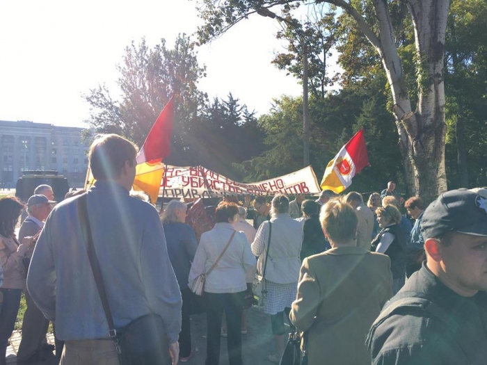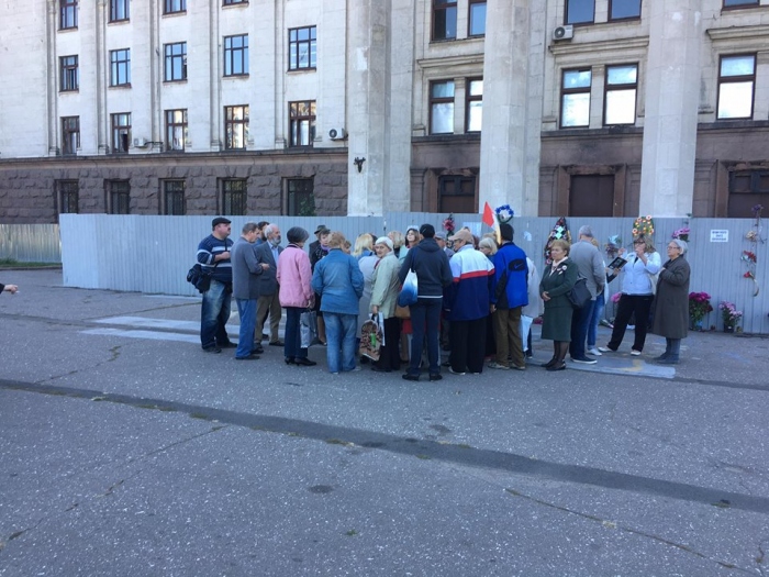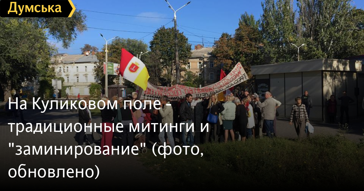 Перед «заминированием» на площади собрались несколько десятков «куликовцев», которые теперь стоят за оцеплением. Здесь присутствуют и активисты «Правого сектора». Между сторонами происходят словесные перепалки.