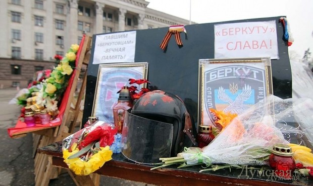 Самооборона пророссийского лагеря на Куликовом поле задержала троих молодых людей, которые стояли у импровизированного «мемориала в честь погибших бойцов «Беркута» и обсуждали возможность его сожжения.