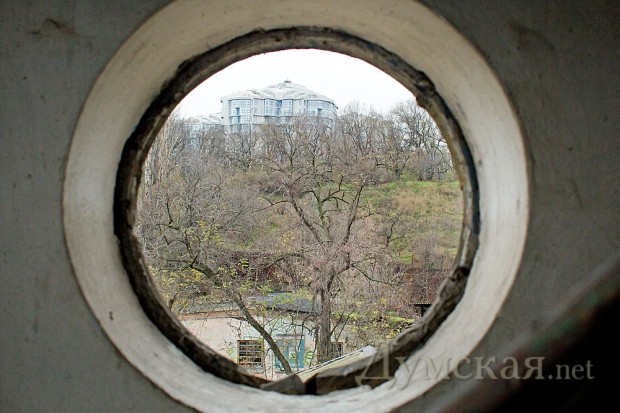 Мы возобновляем нашу постоянную рубрику «Обзор исторических зданий Одессы». На сей раз архитектурный фотообозреватель «Думской» Александр Гиманов познакомился с редким для нашего безлесного края образчиком деревянного зодчества – таинственным зданием, которое стоит под парком Шевченко, на территории второго судоремонтного завода. Попасть туда не так просто, объект охраняется, но башня хорошо видна с той части Суворовской аллеи, что между памятником Неизвестному матросу и спуском на Ланжерон.