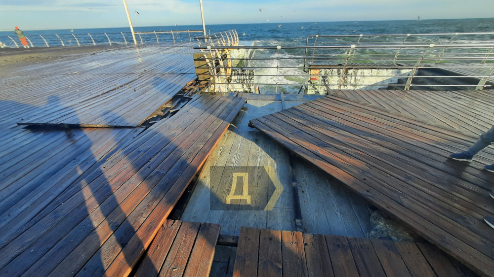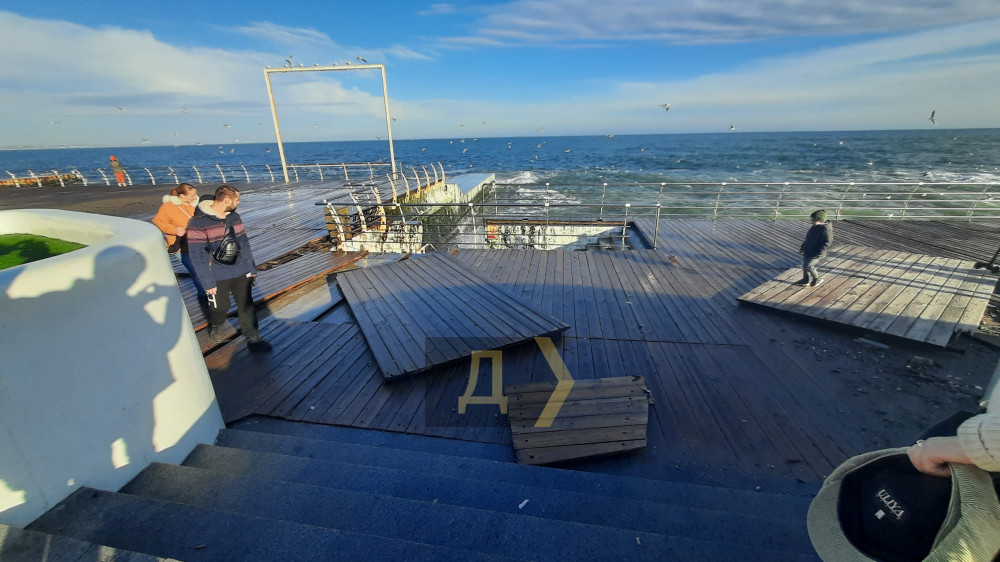 Набережная пережила все шторма, которые были за последние 8-9 лет с момента её ввода в эксплуатацию. Однако, ничто не вечно под Луной. А последний шторм оказался сильнее всех предыдущих. Гвозди, которыми были скреплены деревянные щиты за это время проржавели и прогнили. Очевидно, дельфиноводы все восстановят за свой счет. Ничего страшного не произошло.