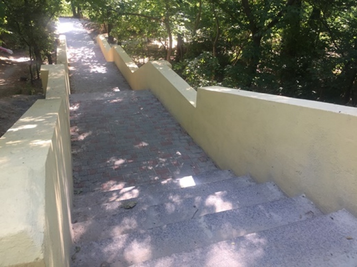 Как сообщает пресс-служба мэрии, в ходе капитального ремонта заменено бетонное покрытие межлестничных площадок на тротуарную плитку, разрушенные парапеты из камня-ракушечника заменены на новые из кирпичной кладки и обустроены ливнеотводящие лотки.